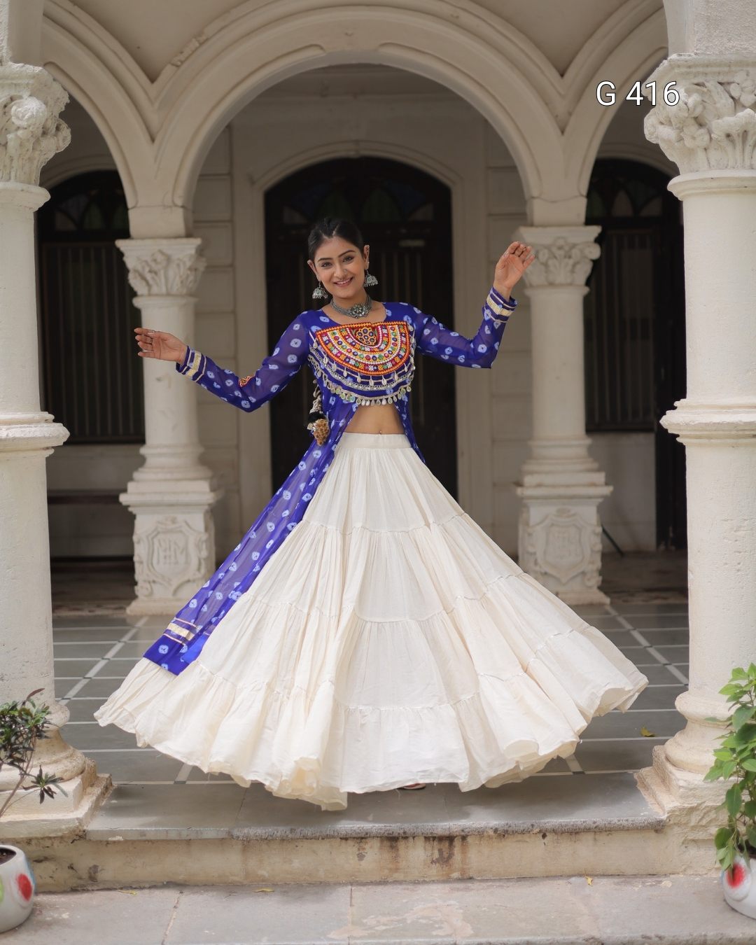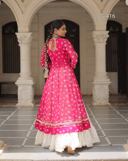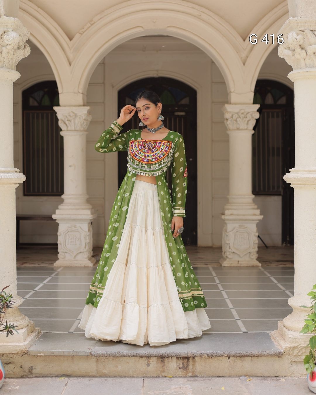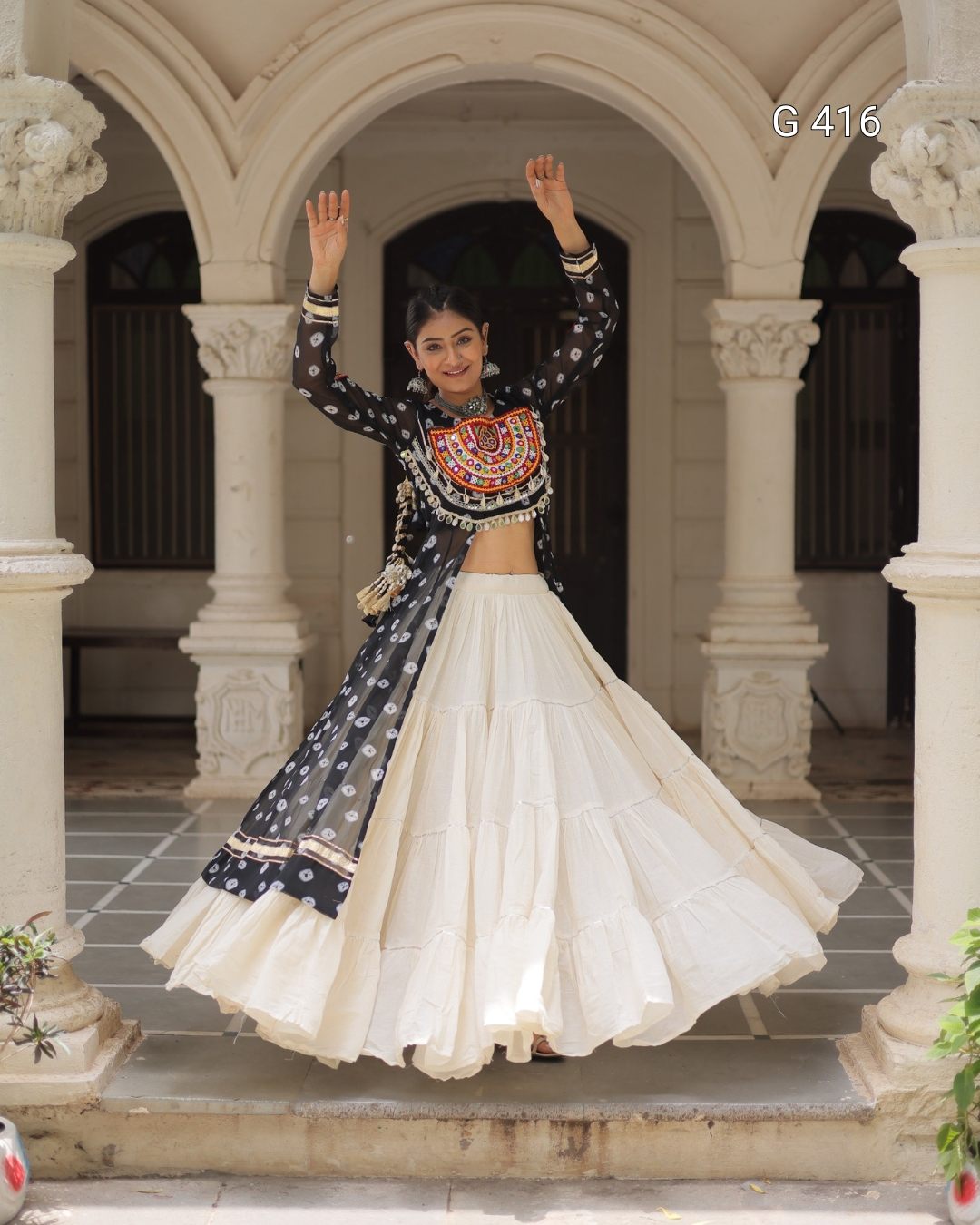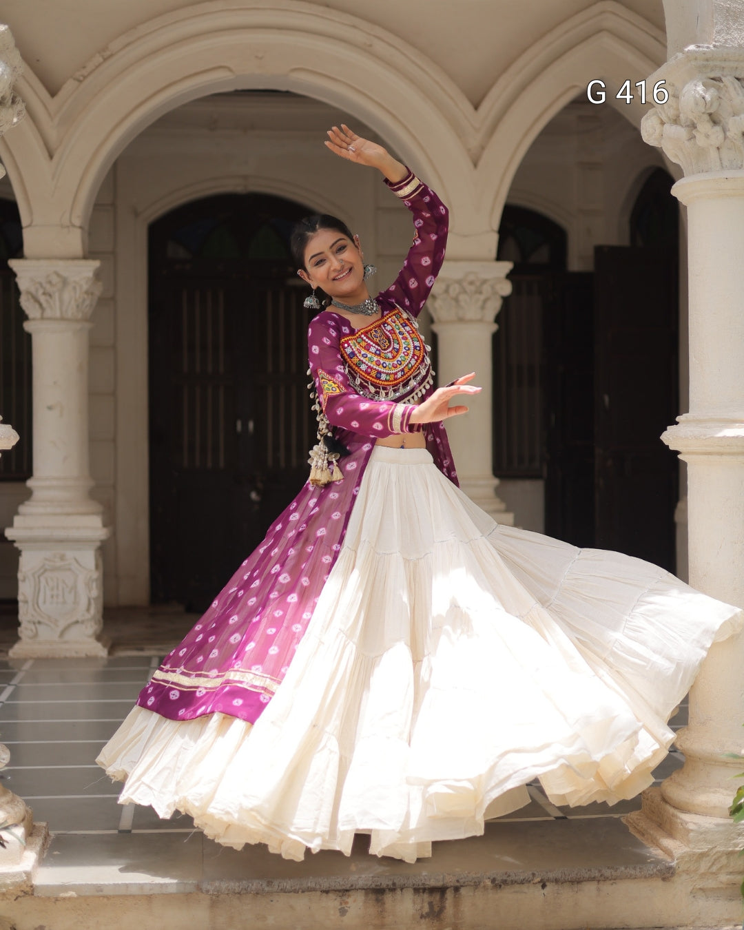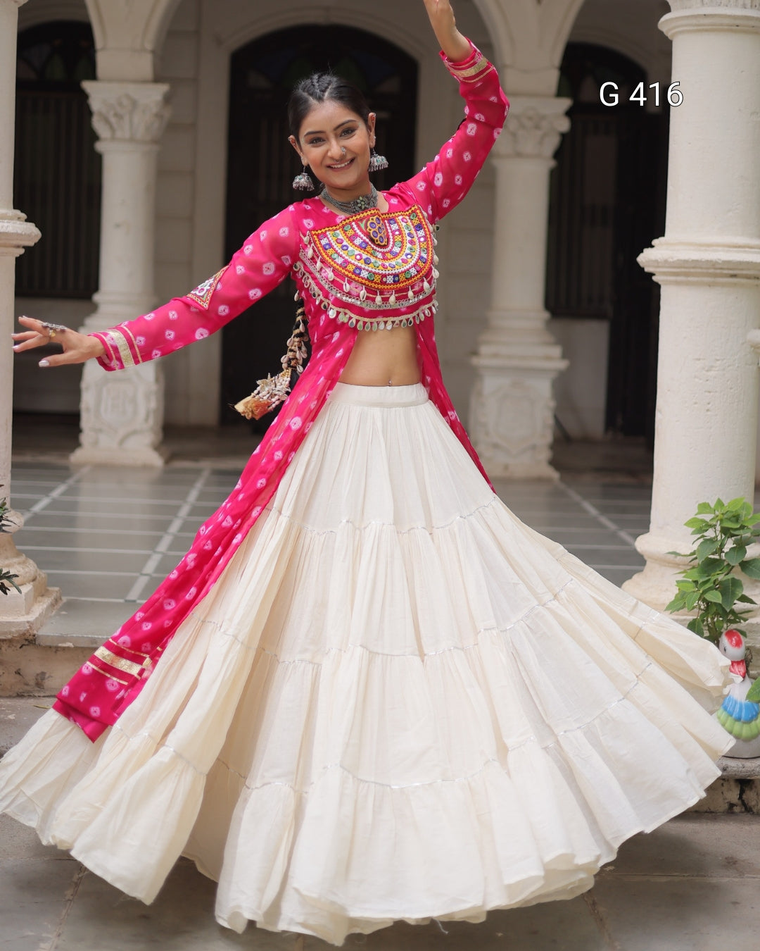 Kora Cotton Lehenga with Bandhani Kurti – G 416