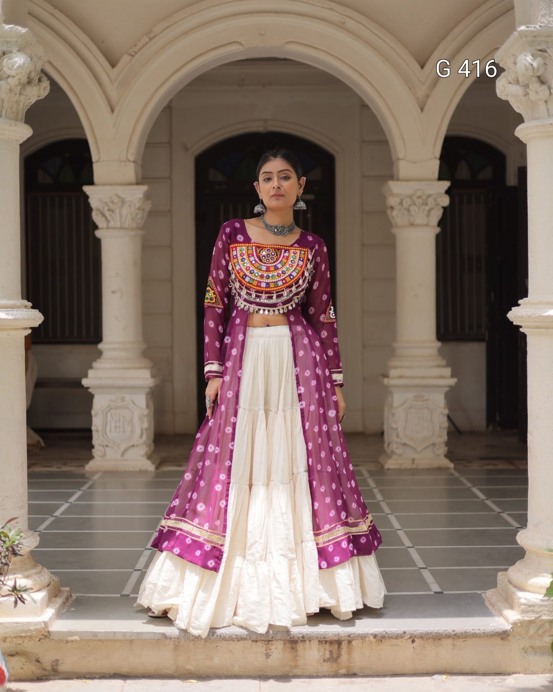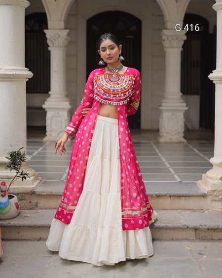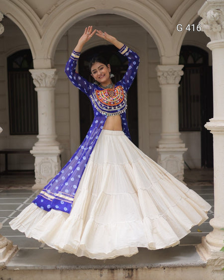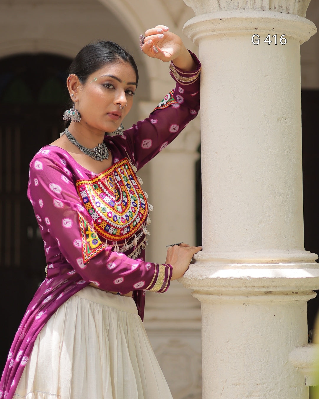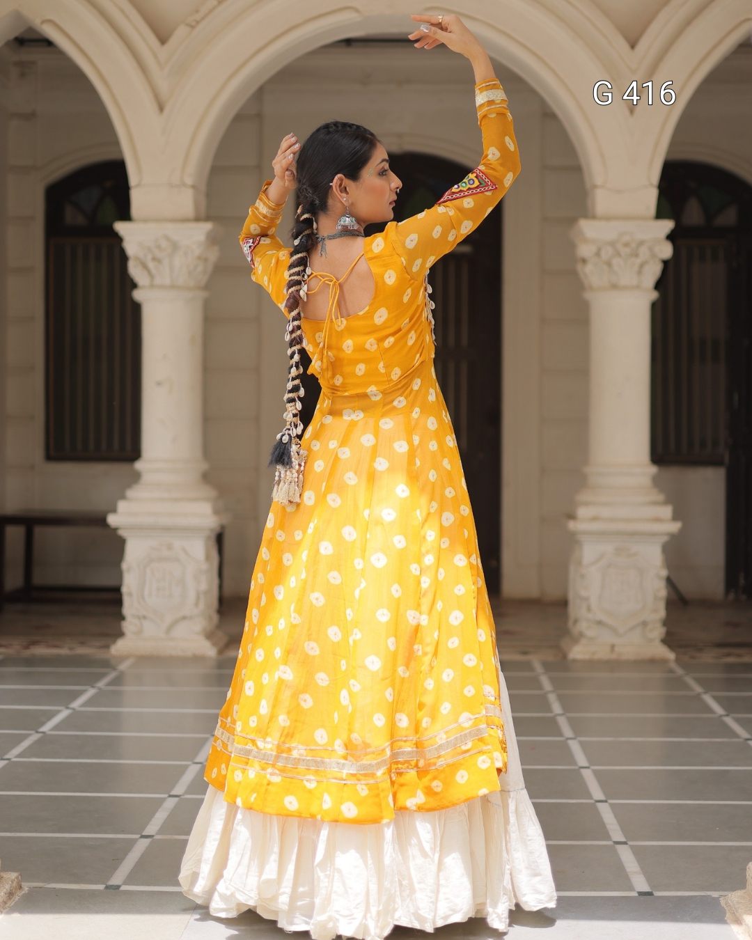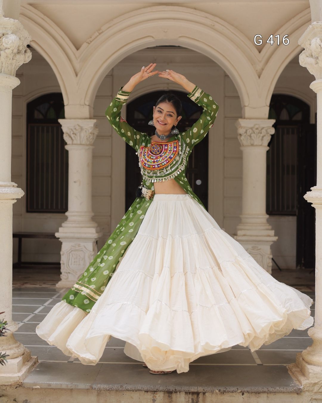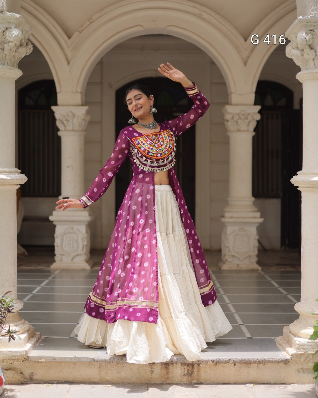 Kora Cotton Lehenga with Bandhani Kurti – G 416