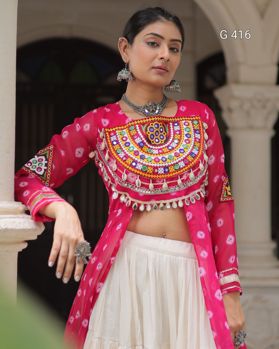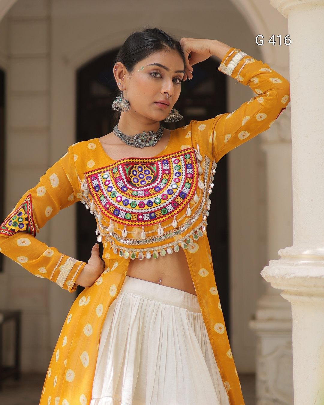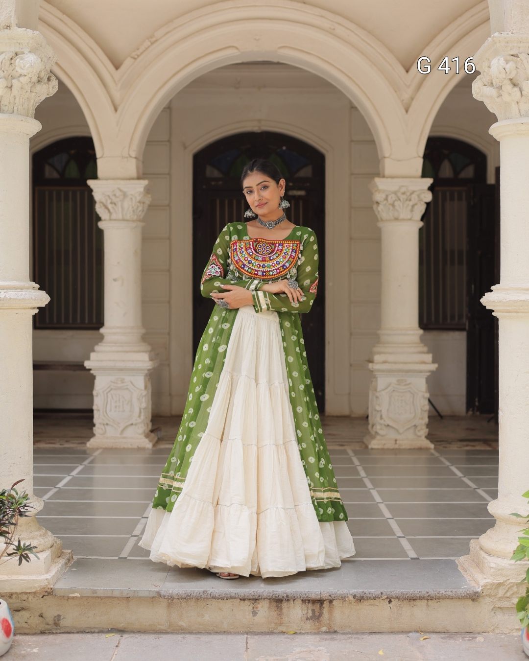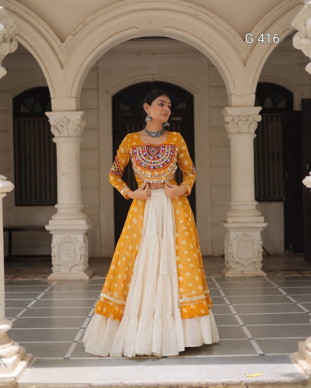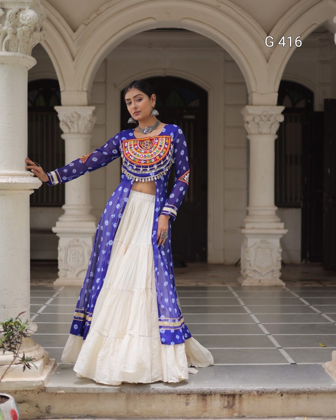 Kora Cotton Lehenga with Bandhani Kurti – G 416