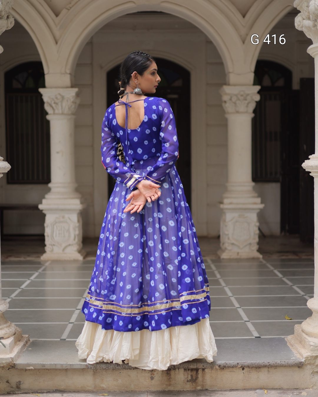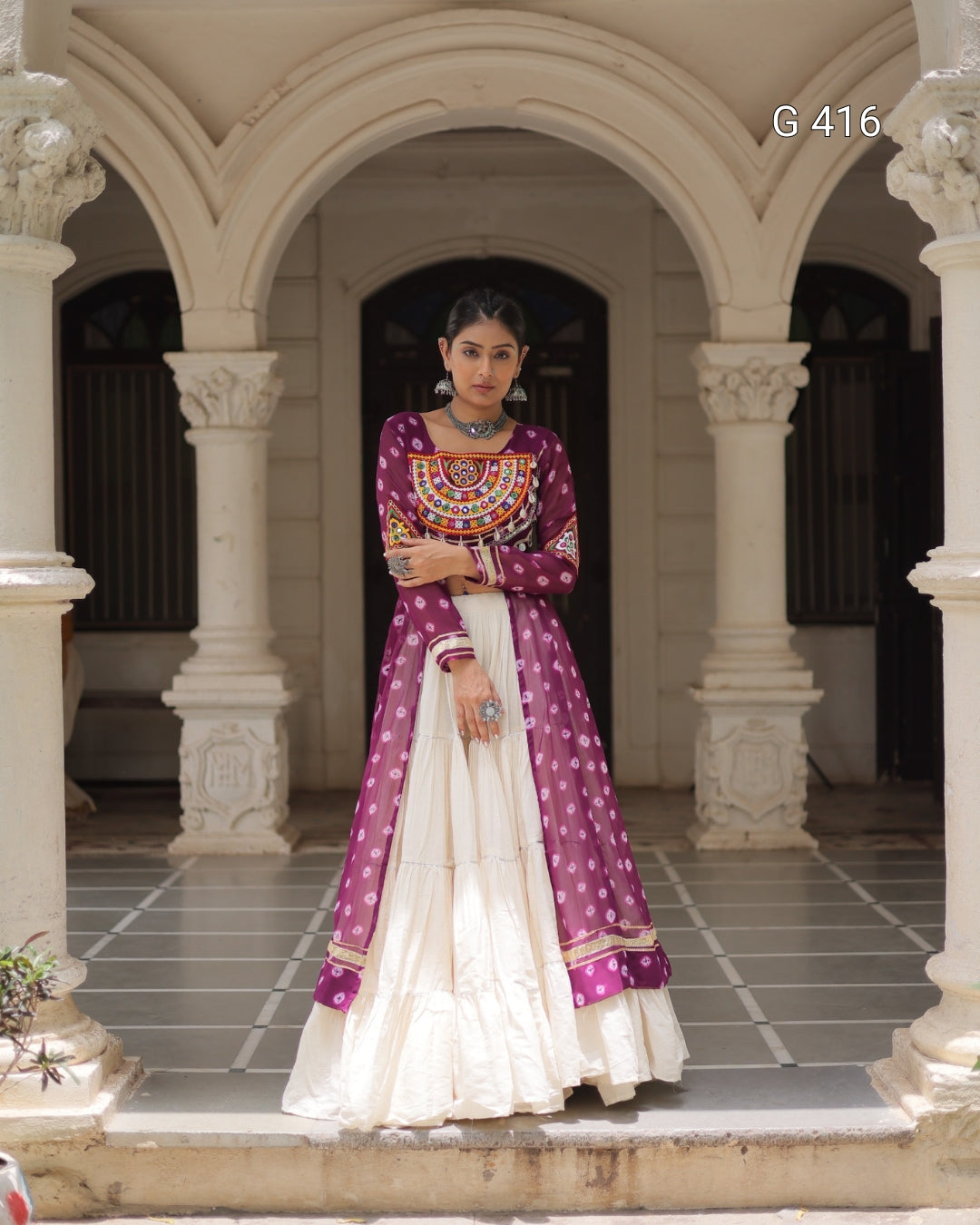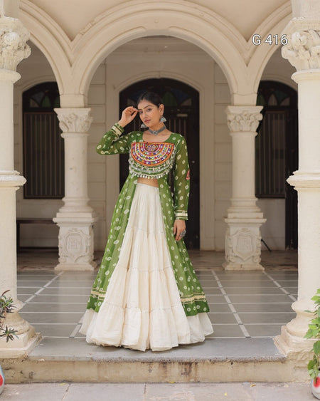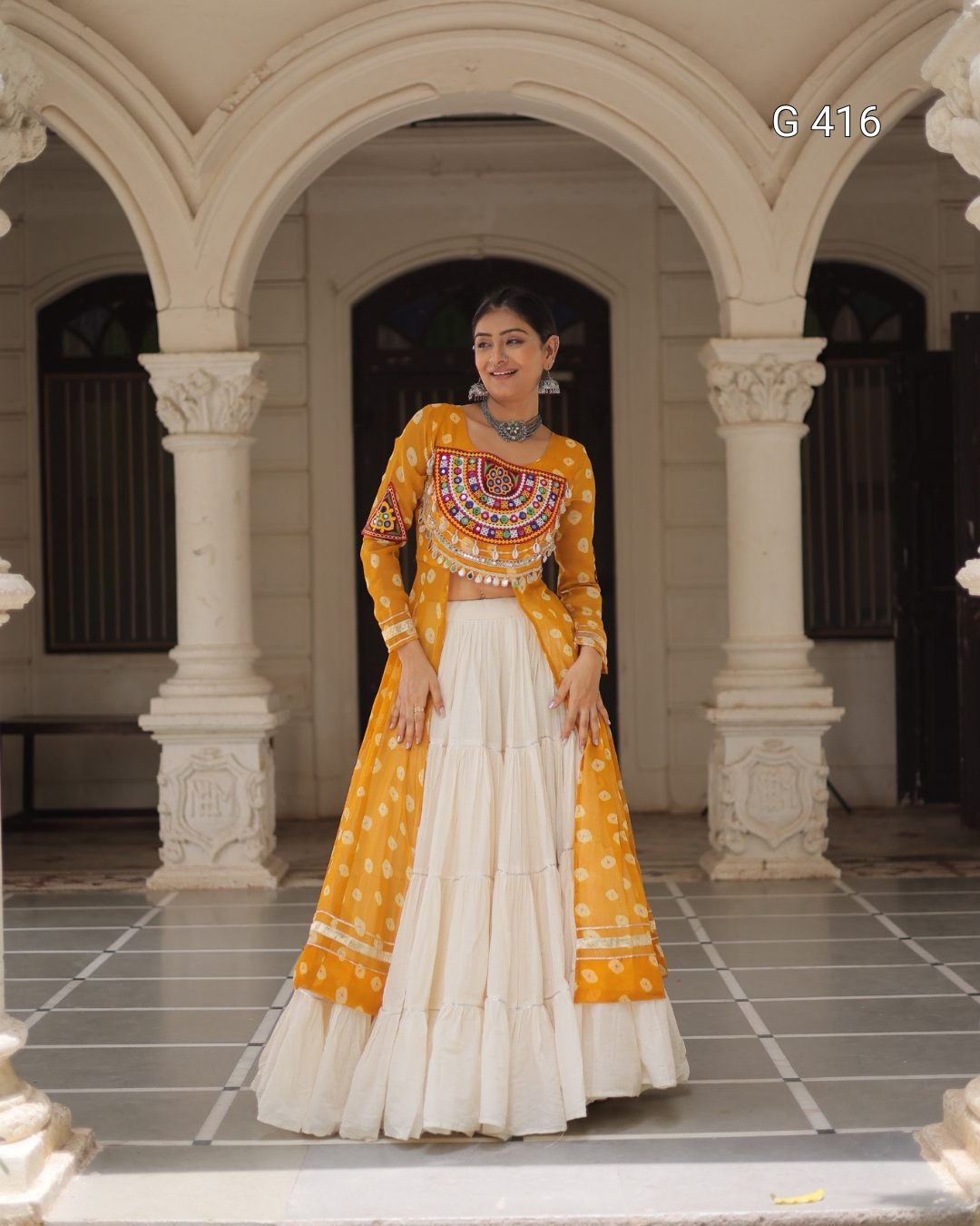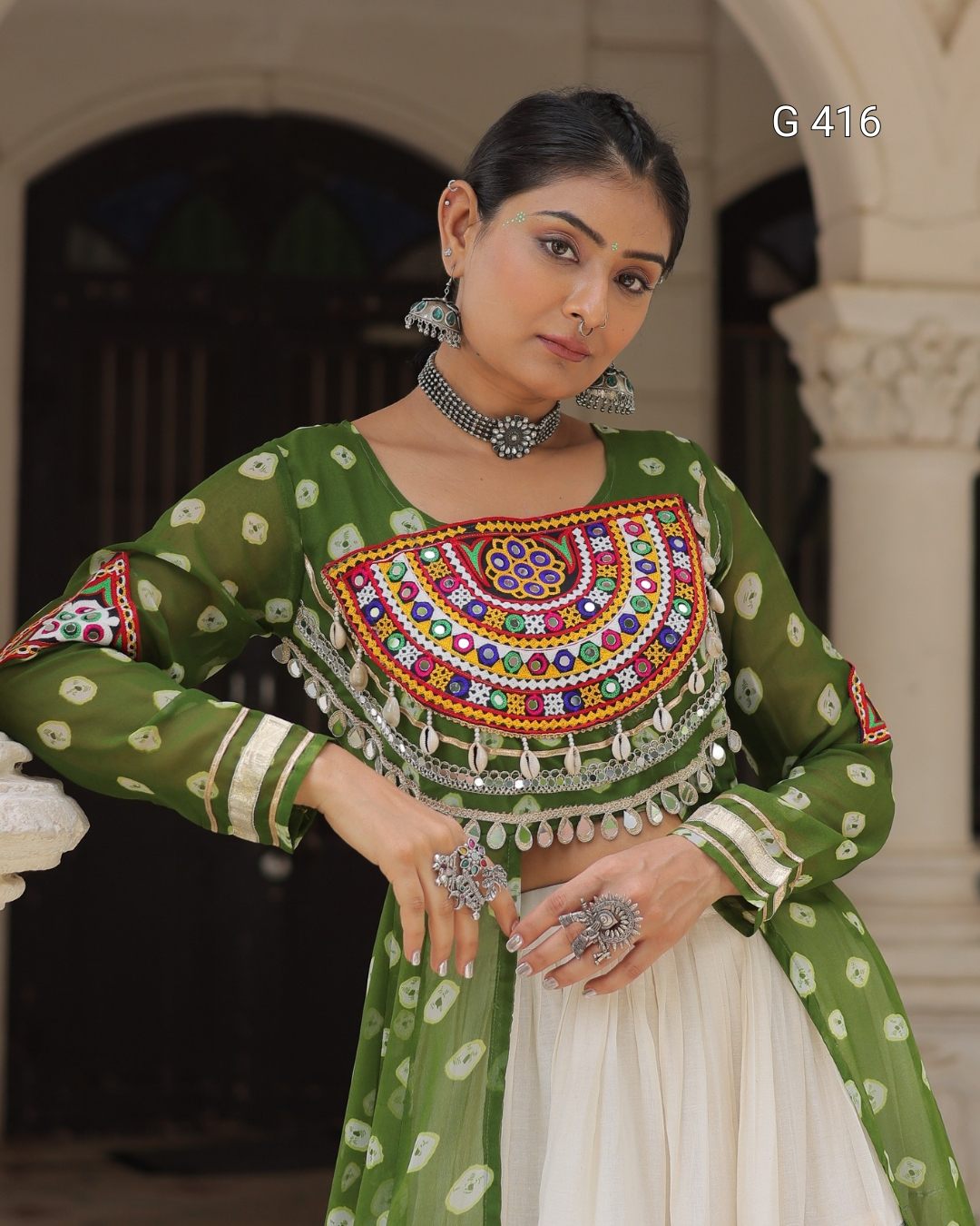 Kora Cotton Lehenga with Bandhani Kurti – G 416