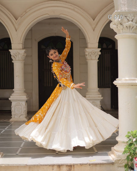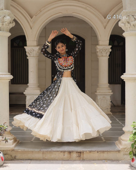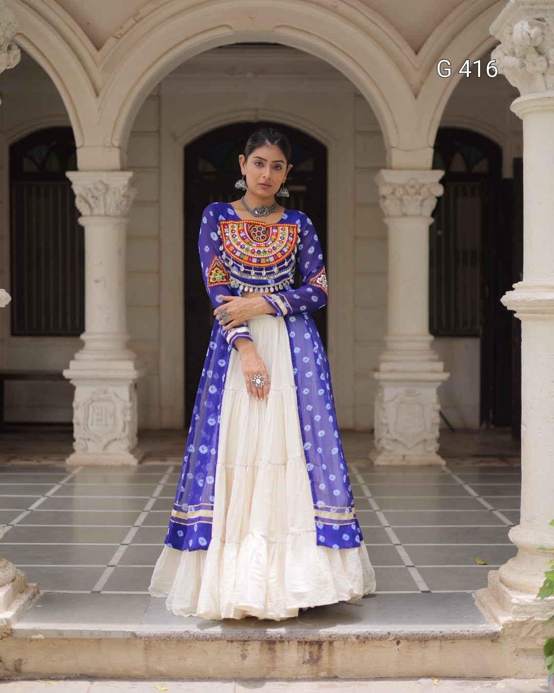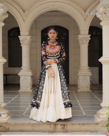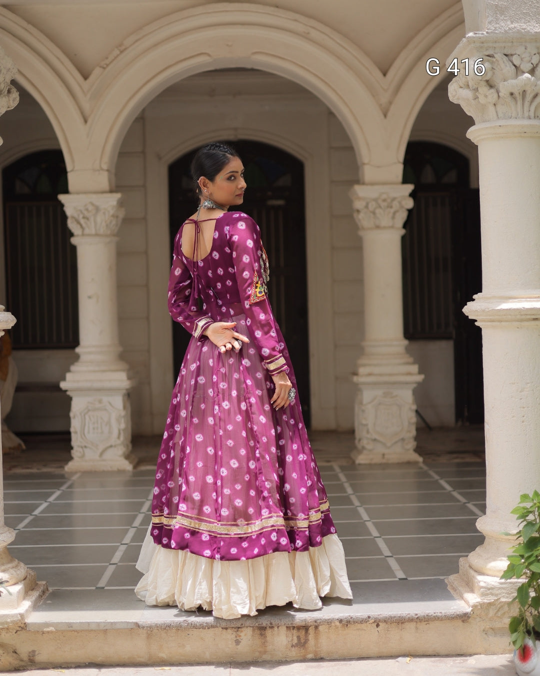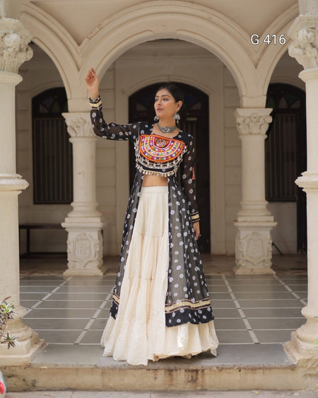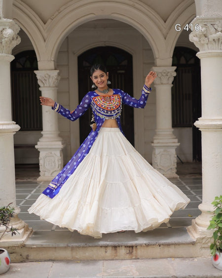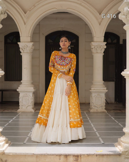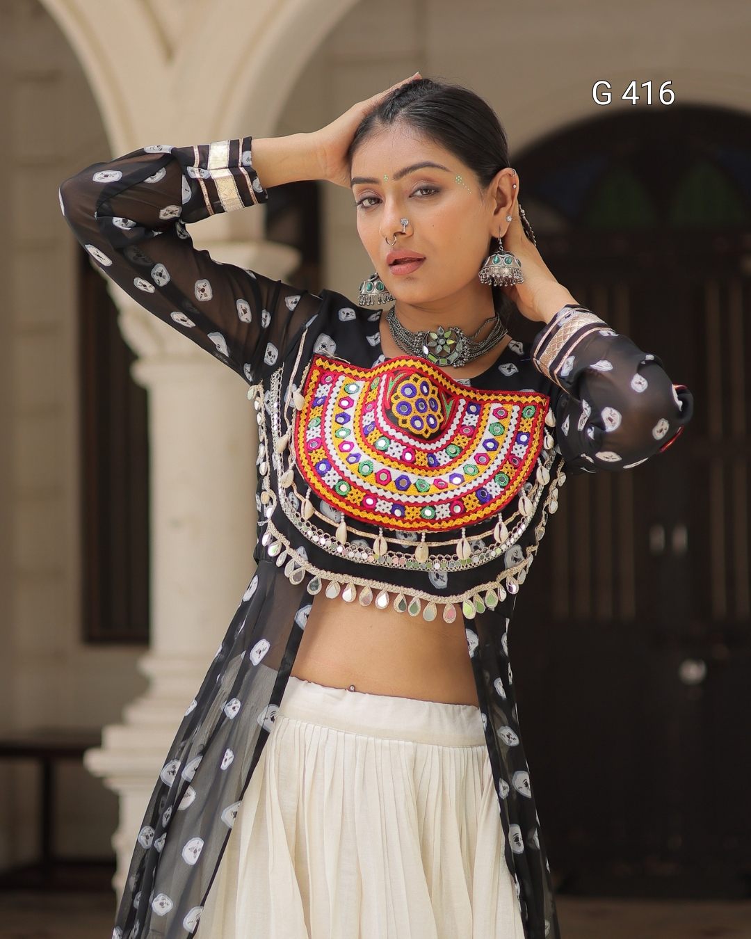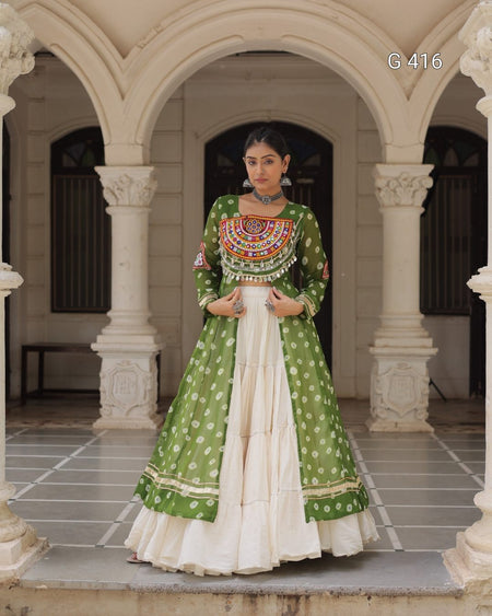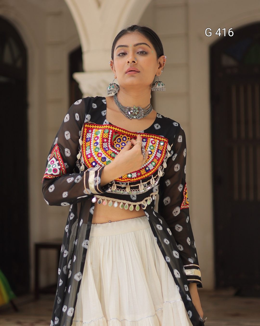 Kora Cotton Lehenga with Bandhani Kurti – G 416