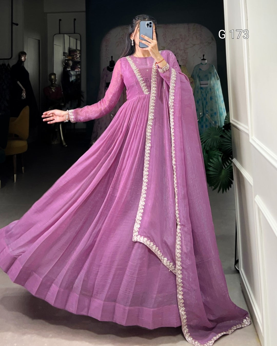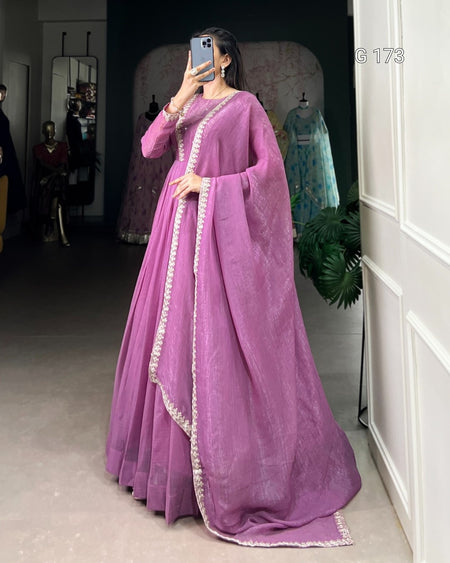 Lavender Silver Glory Gown with Hotfix Sequins & Thread Embroidery – G 173 Lavender