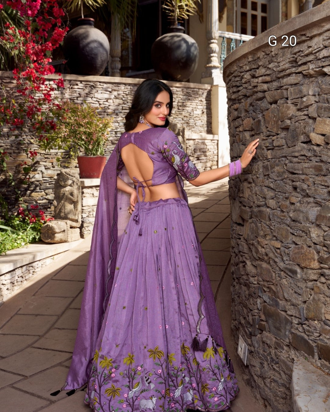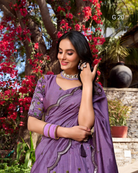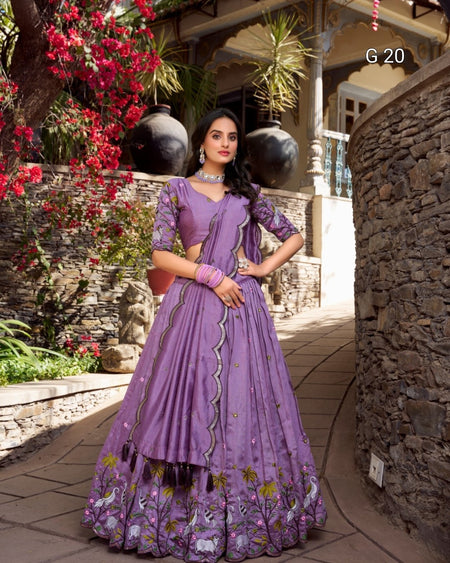 Lavender Vichitra Simmer Lehenga with Sequins & Thread Embroidery – G 20 Lavender