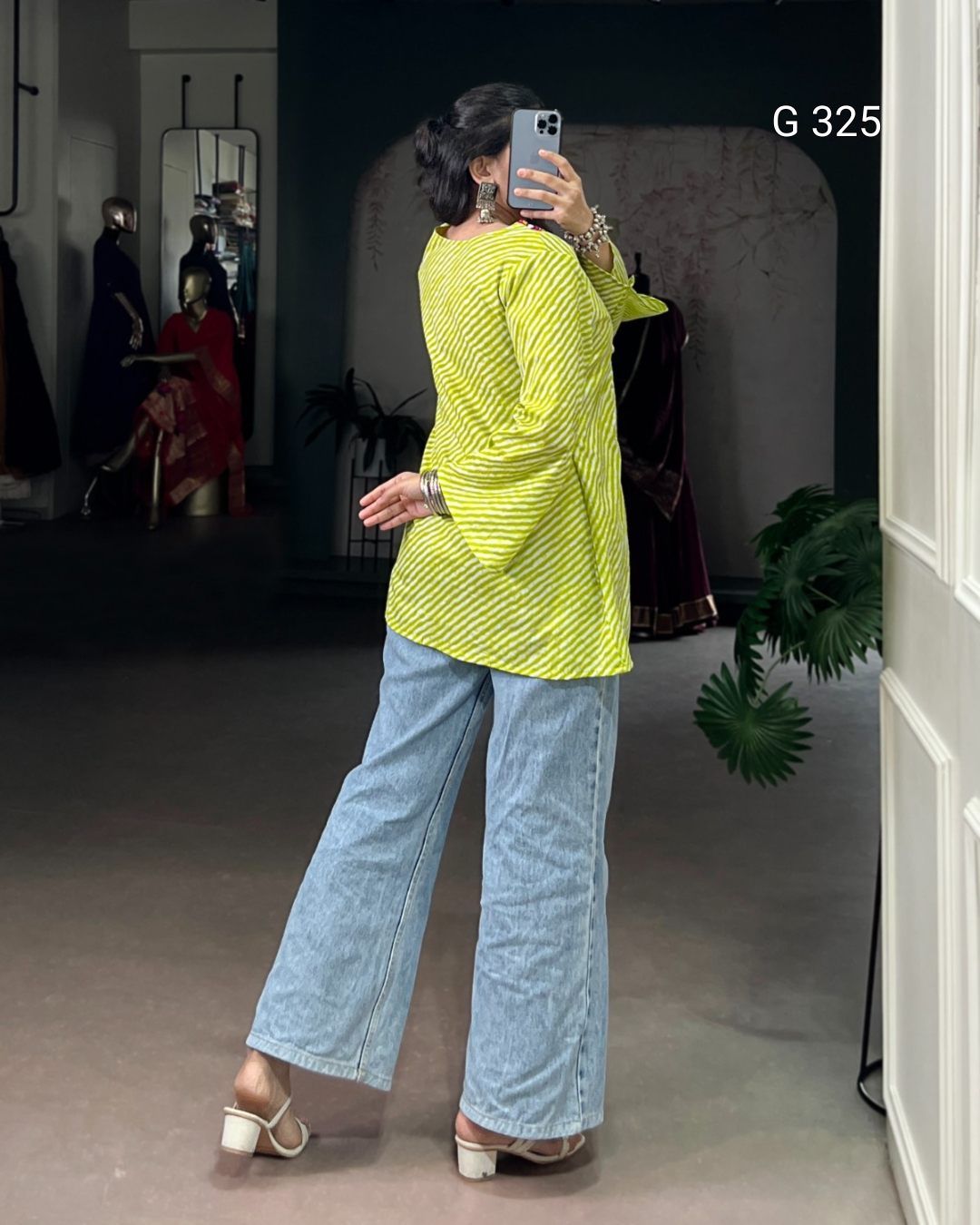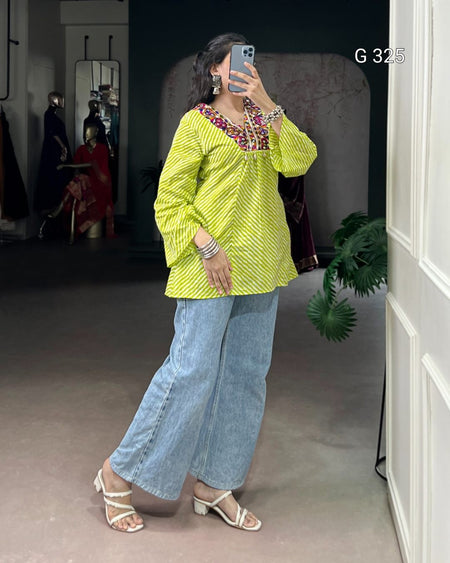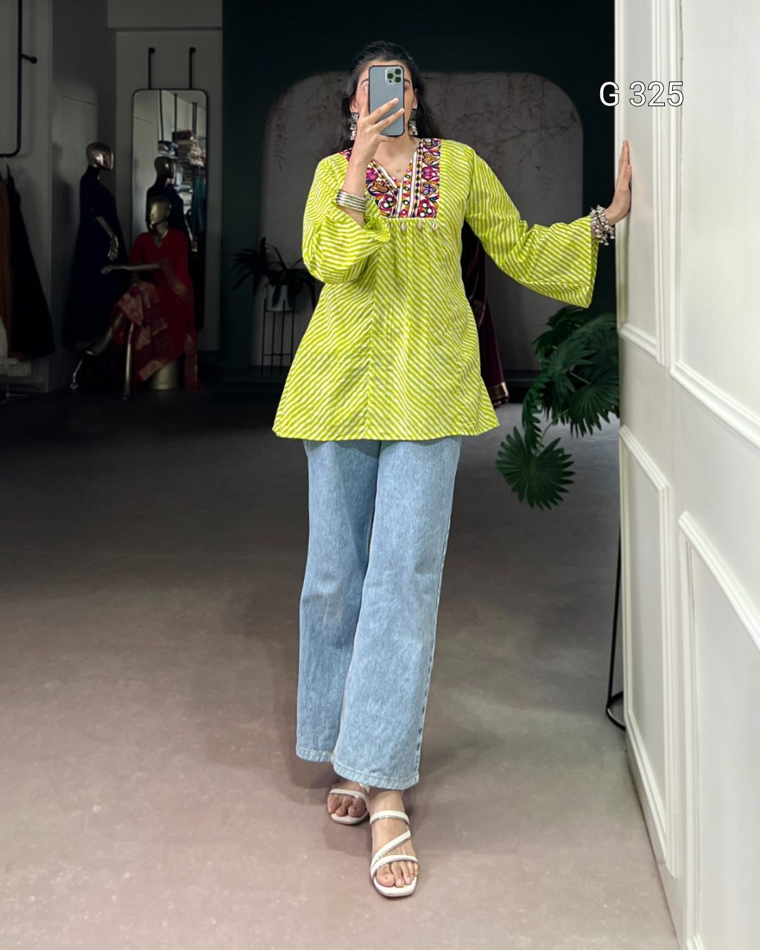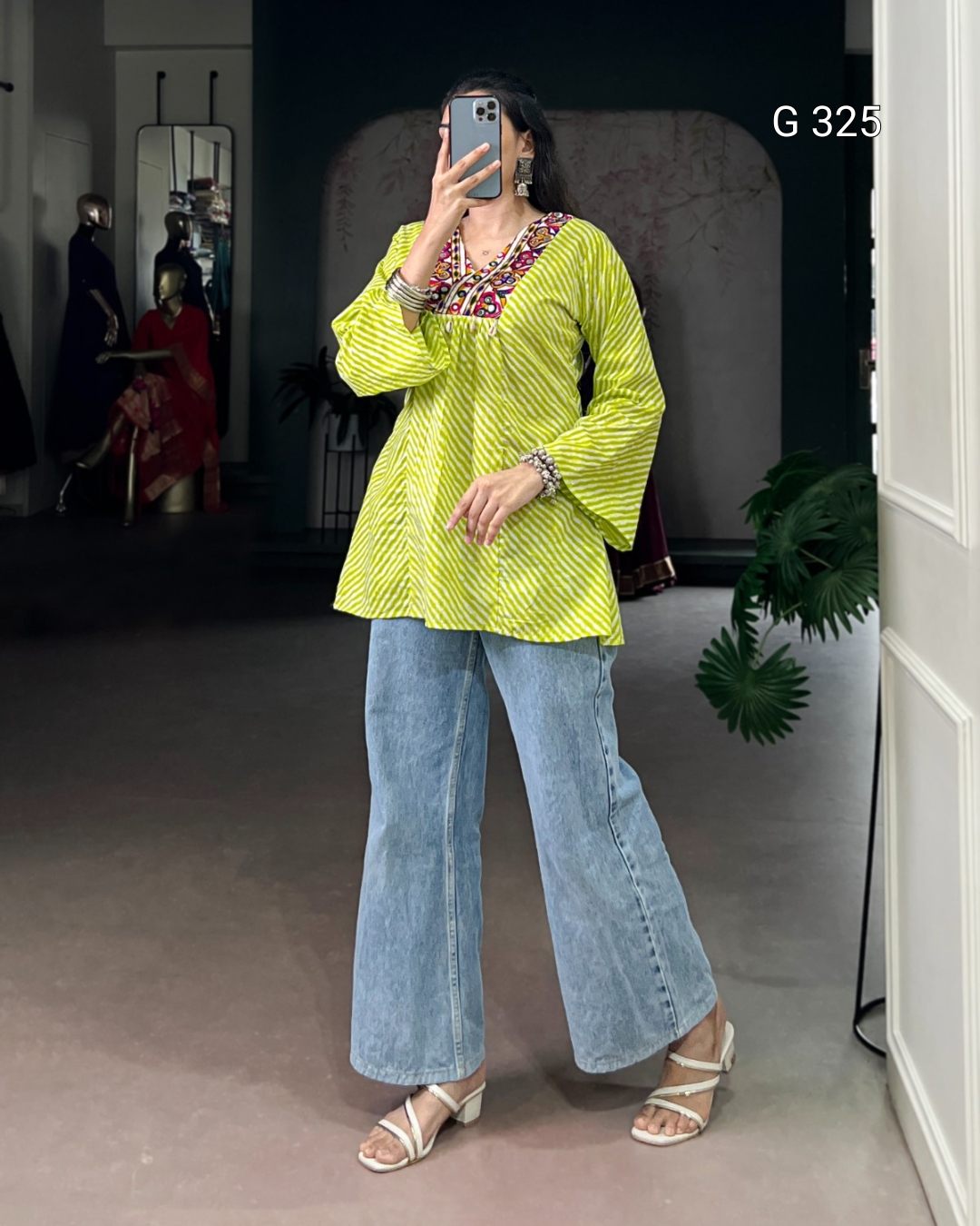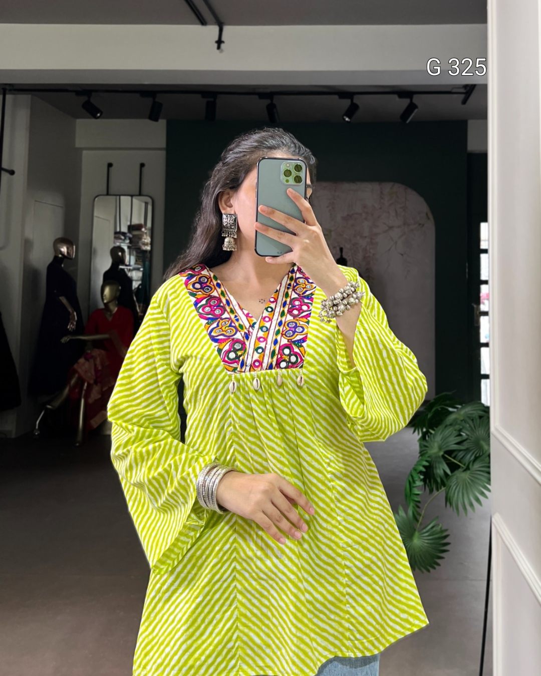 Leheriya Cotton Tunic Top with Mirror Gamthi Work – G 325 Parrot