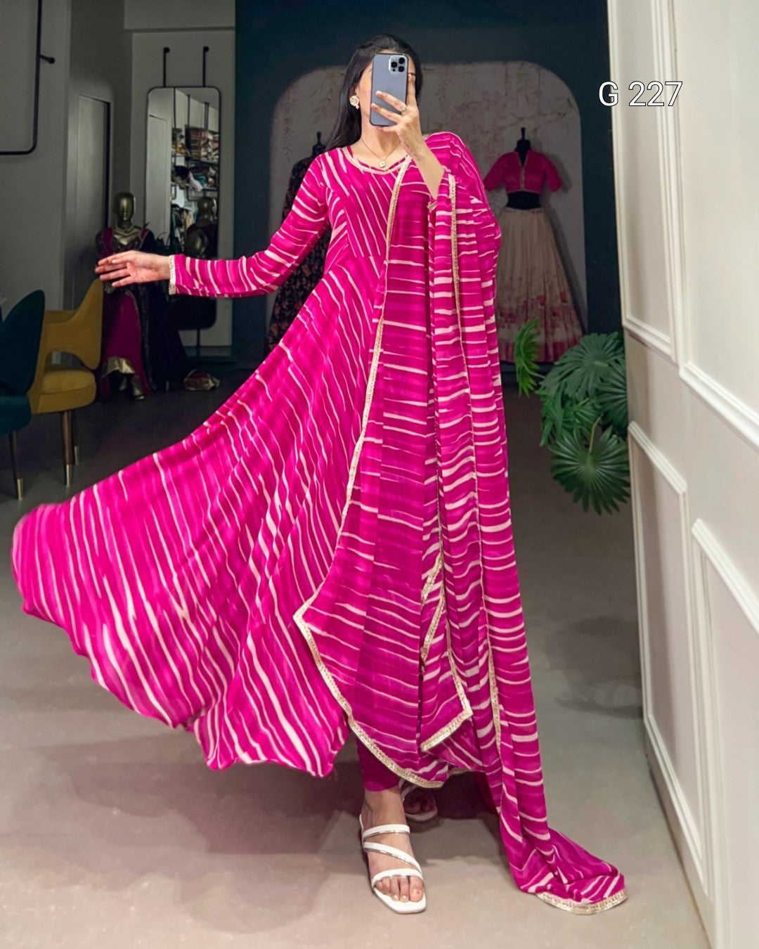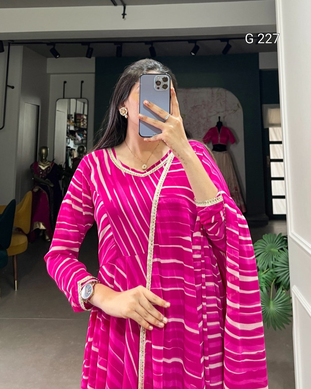 Leheriya Georgette Gown with Lace Touch Up – G 227 Pink