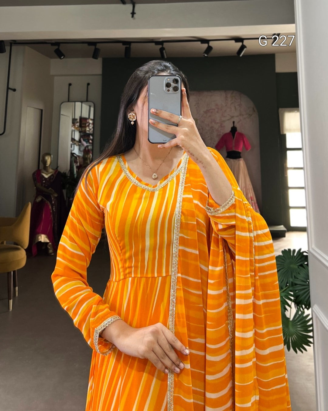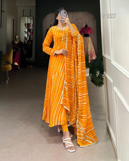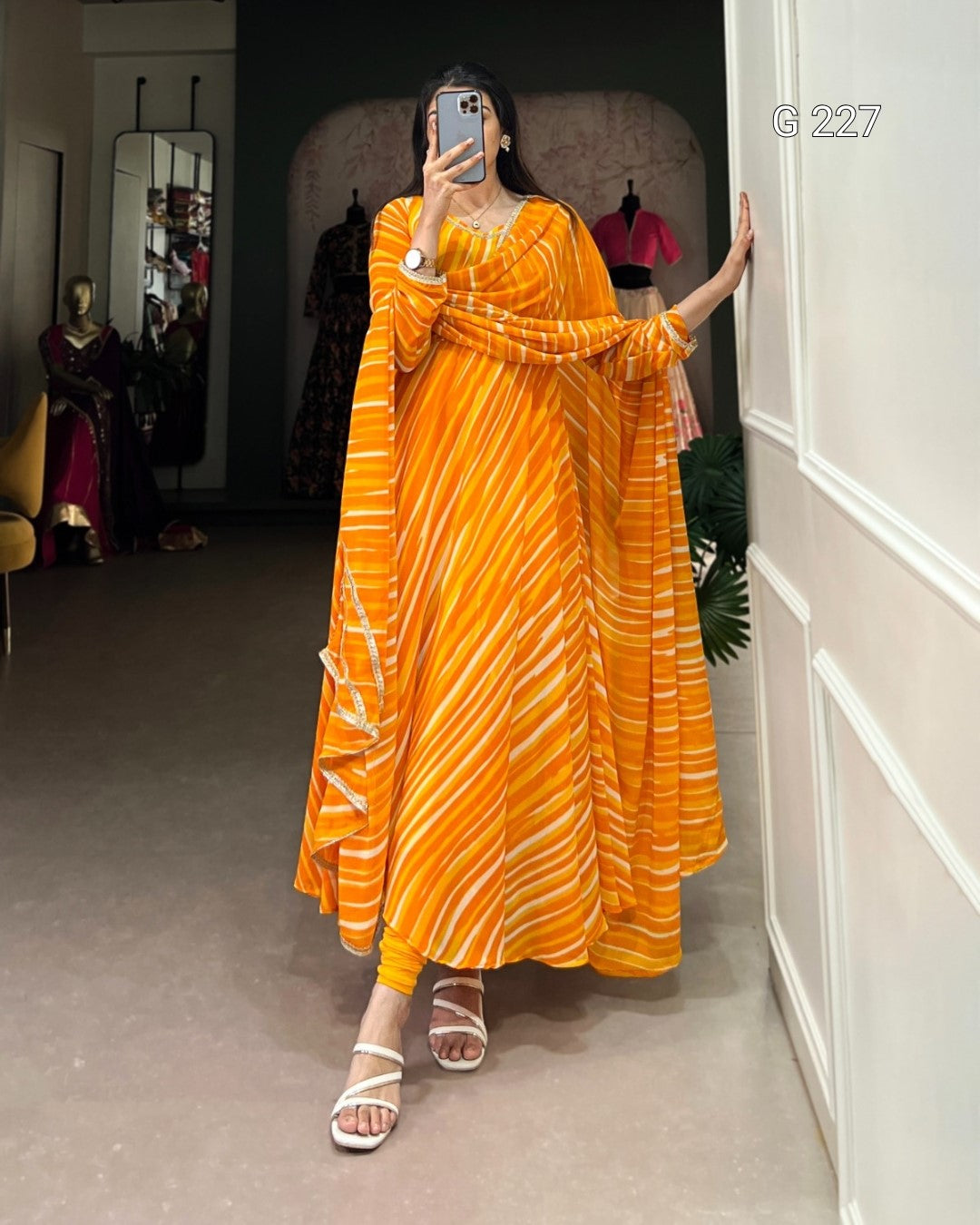 Leheriya Georgette Gown with Lace Touch Up – G 227 Yellow