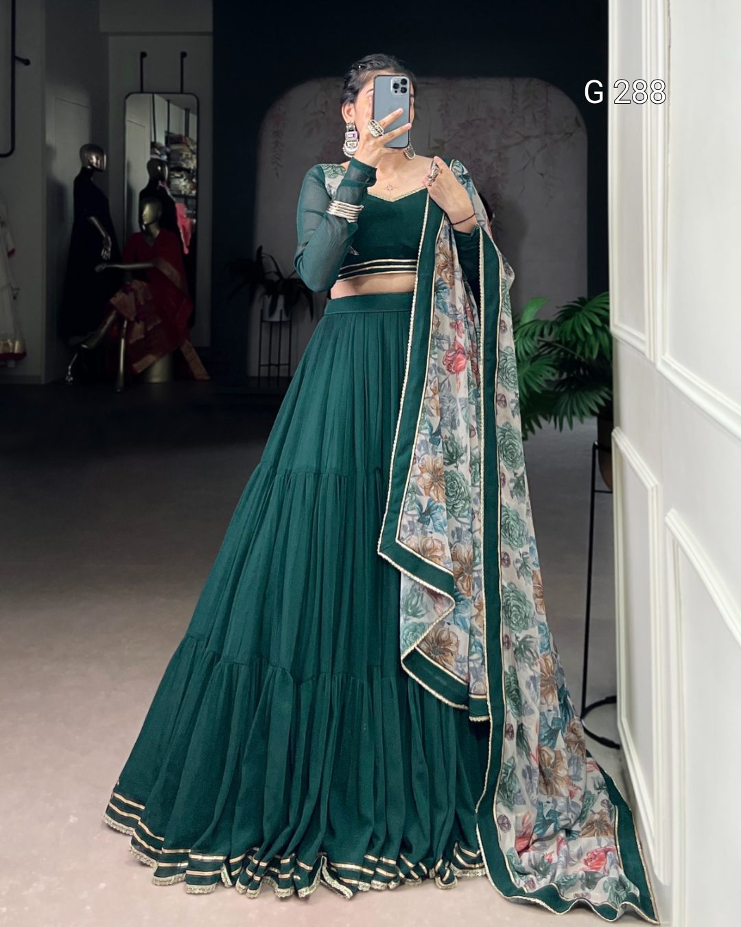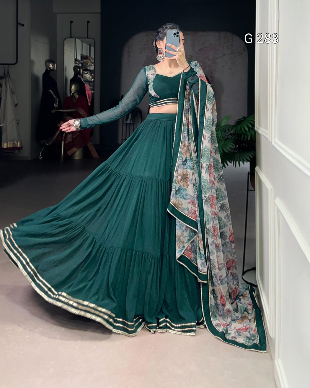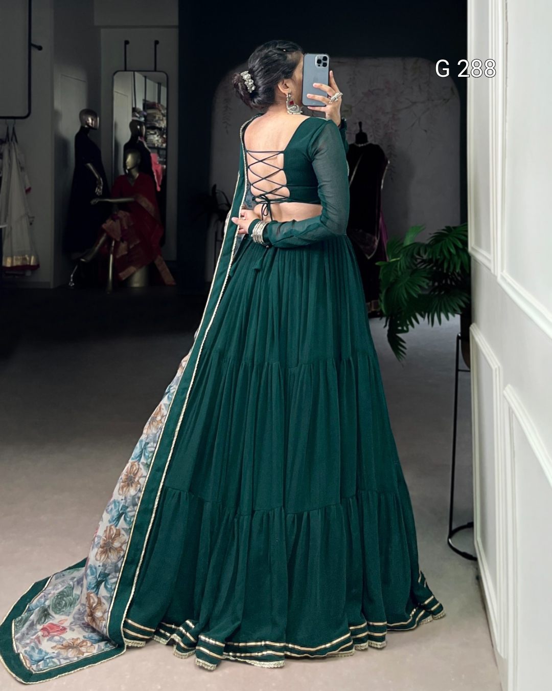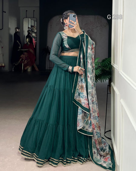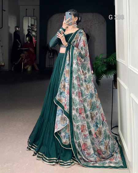Marble Fabric Lehenga with Lace Touch Up & Floral Chiffon Dupatta - G 288 Green