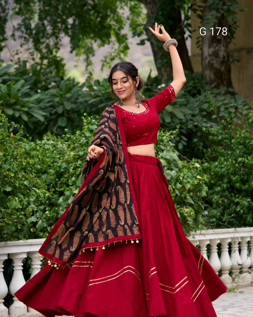 Maroon Pure Cotton Lehenga with Gota Patti Touch-Up & Real Mirror Work, Coin Lace Border Dupatta – G 178 Maroon