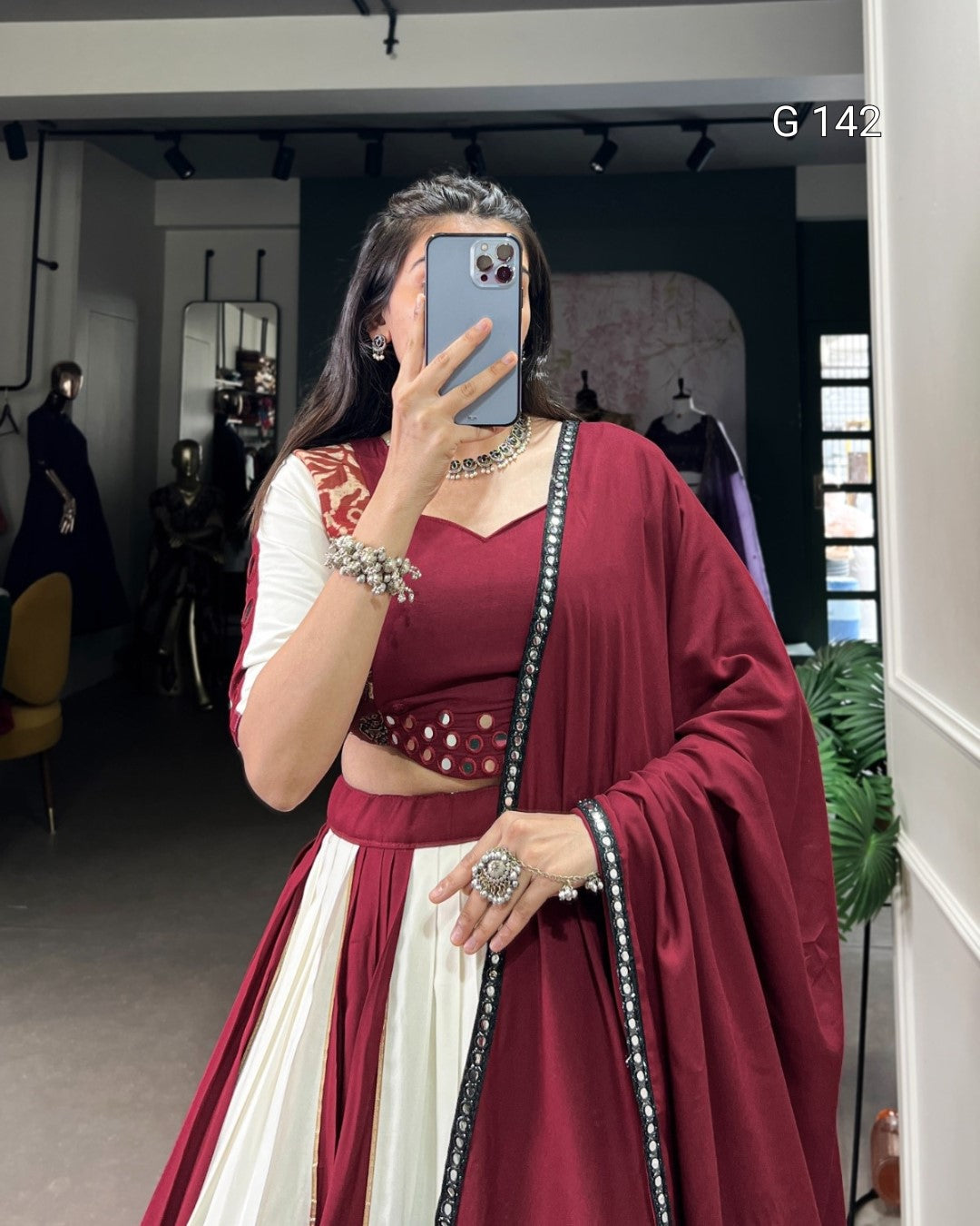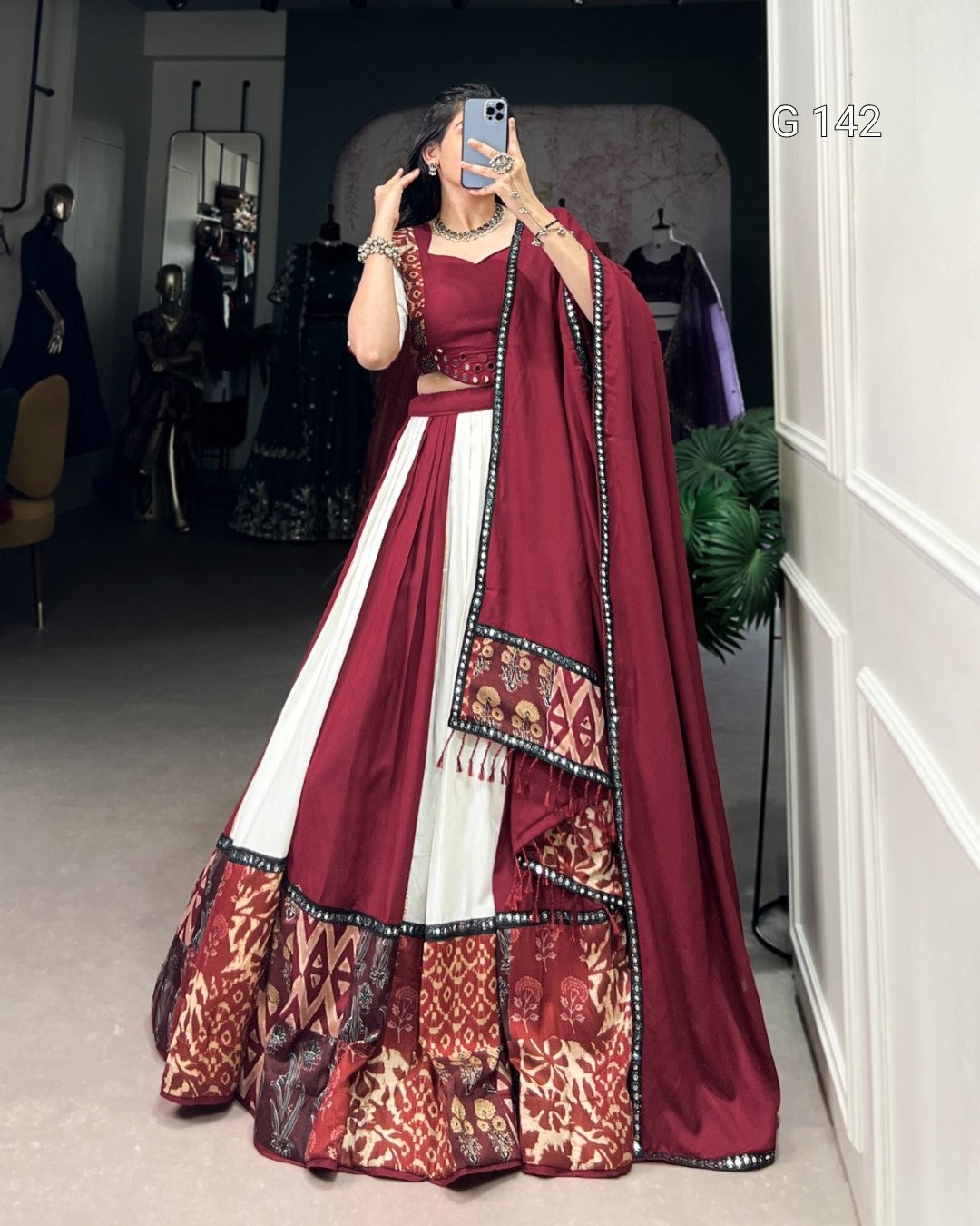 Maroon Pure Rayon Lehenga with Paper Mirror Work & Gota Patti Touch Up – Bridal Lehenga Set-G 142 Maroon