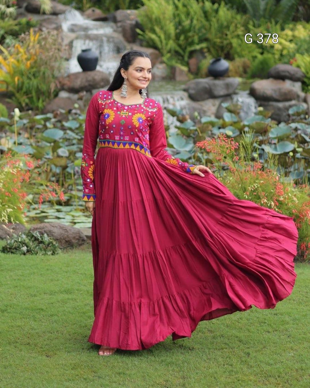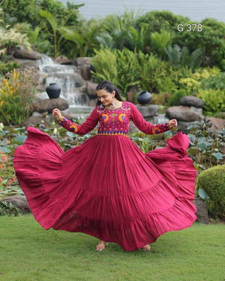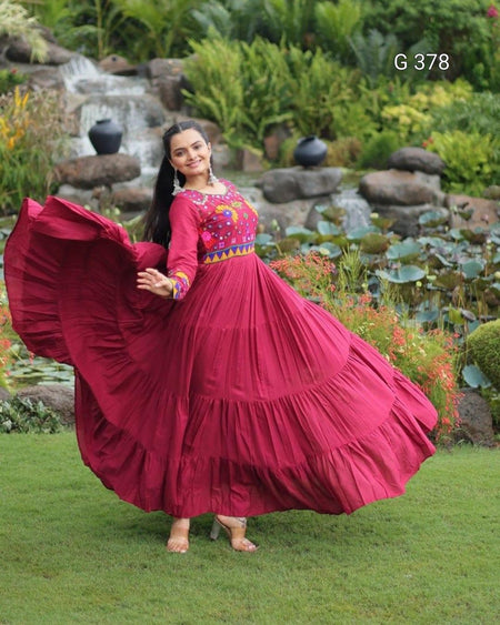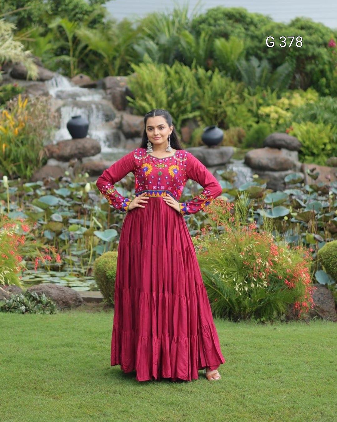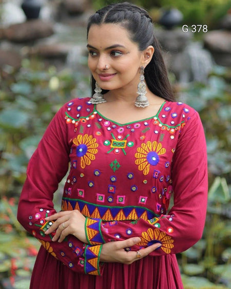 Maroon Reyon Gown with Kutchi Gamthi Work – G 378