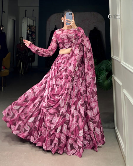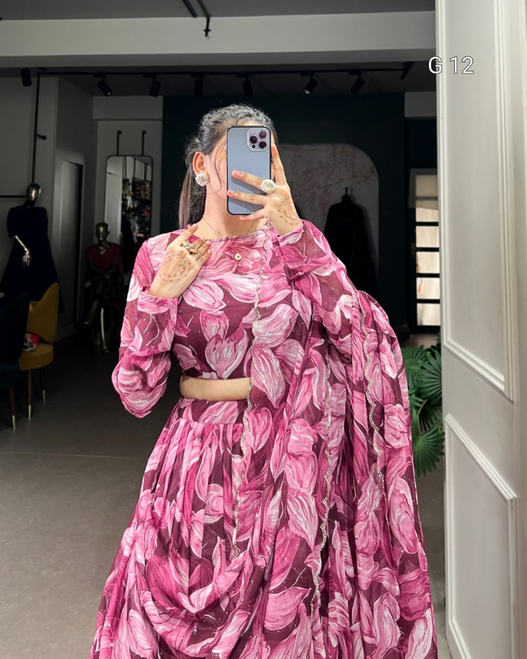 Maroon Tabby Silk Lehenga with Printed Hotfix Work – G 12 Maroon