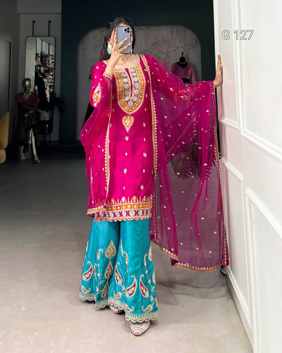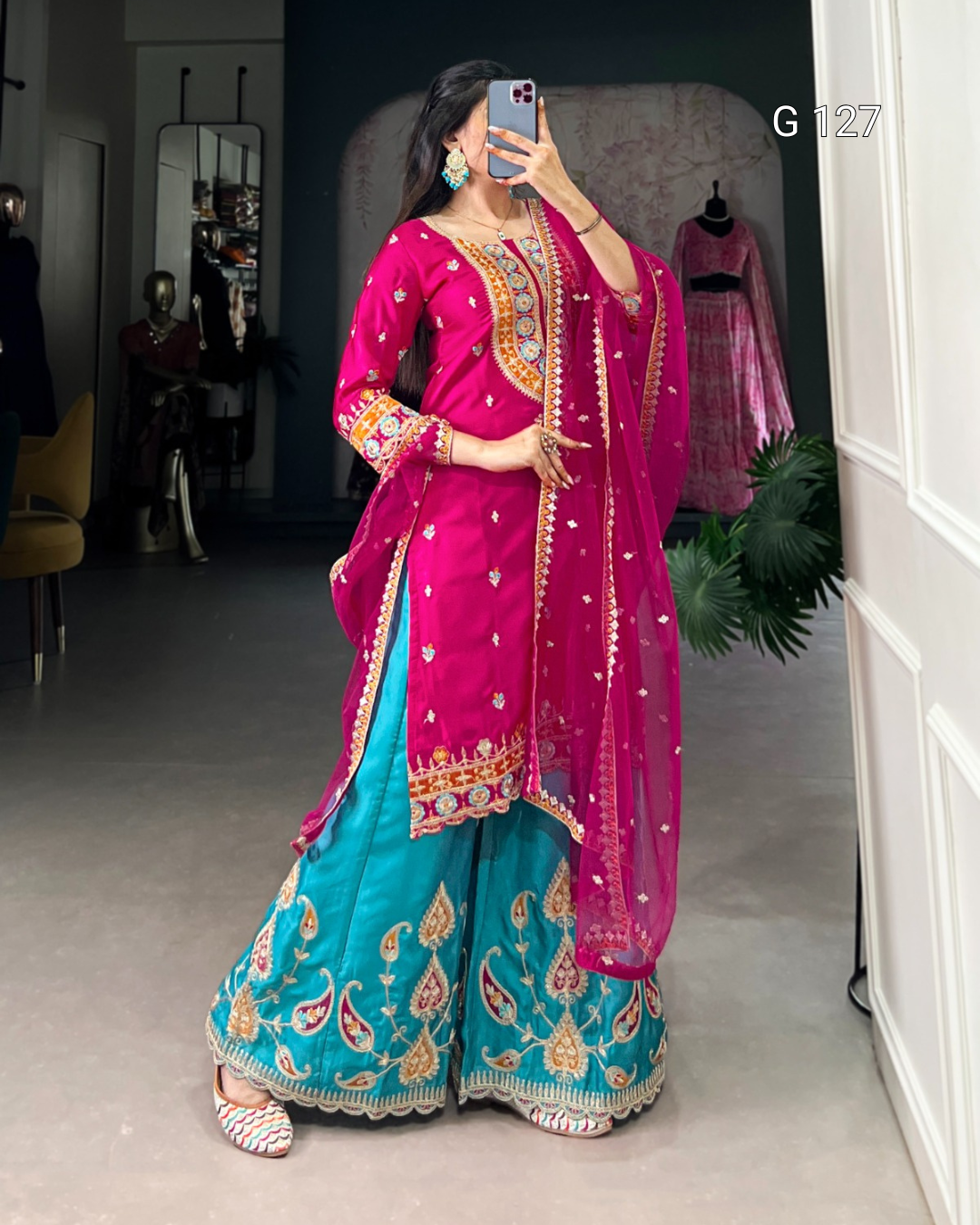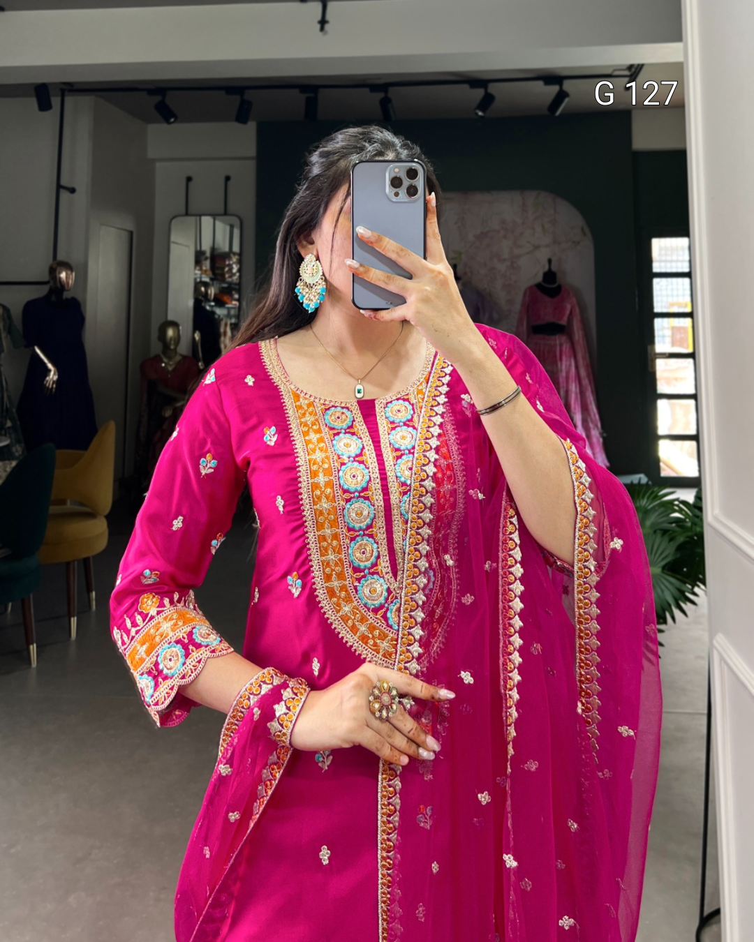 Moonga Silk Top & Bottom Set with Sequins and Thread Embroidery Work – G 127 Pink
