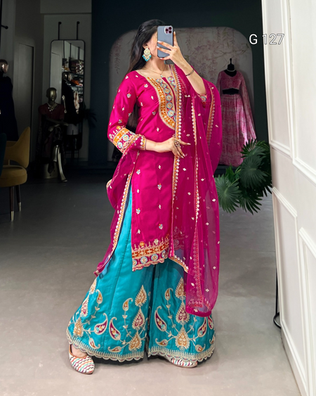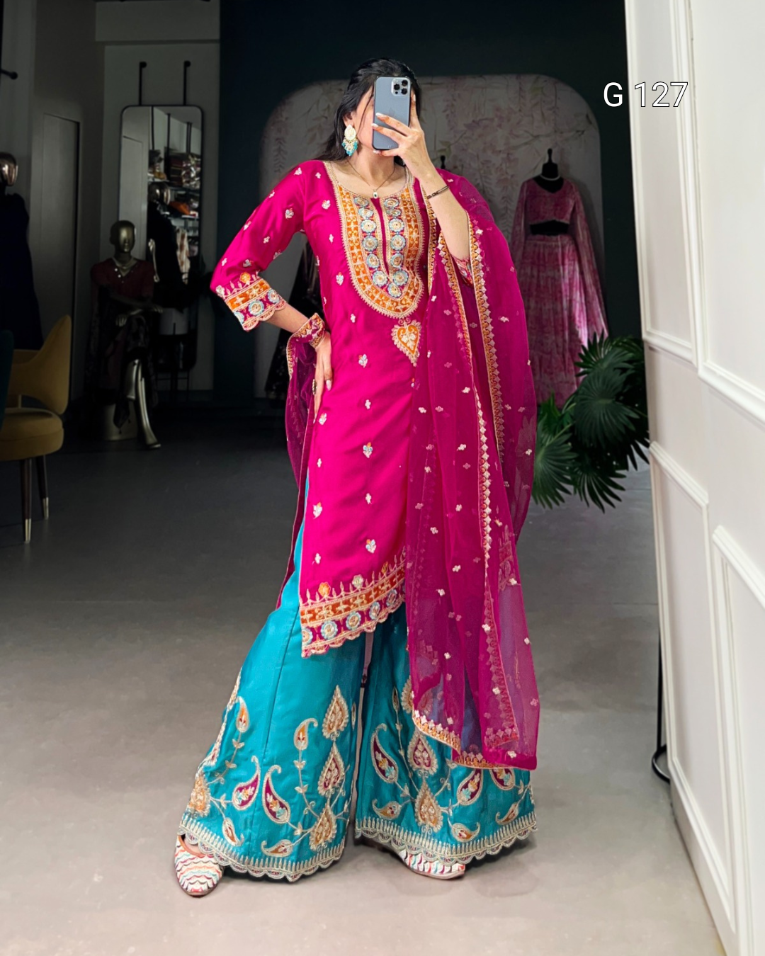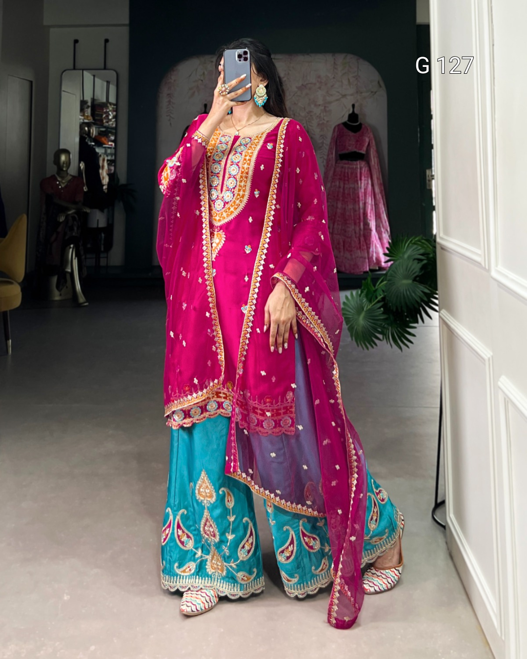Moonga Silk Top & Bottom Set with Sequins and Thread Embroidery Work – G 127 Pink