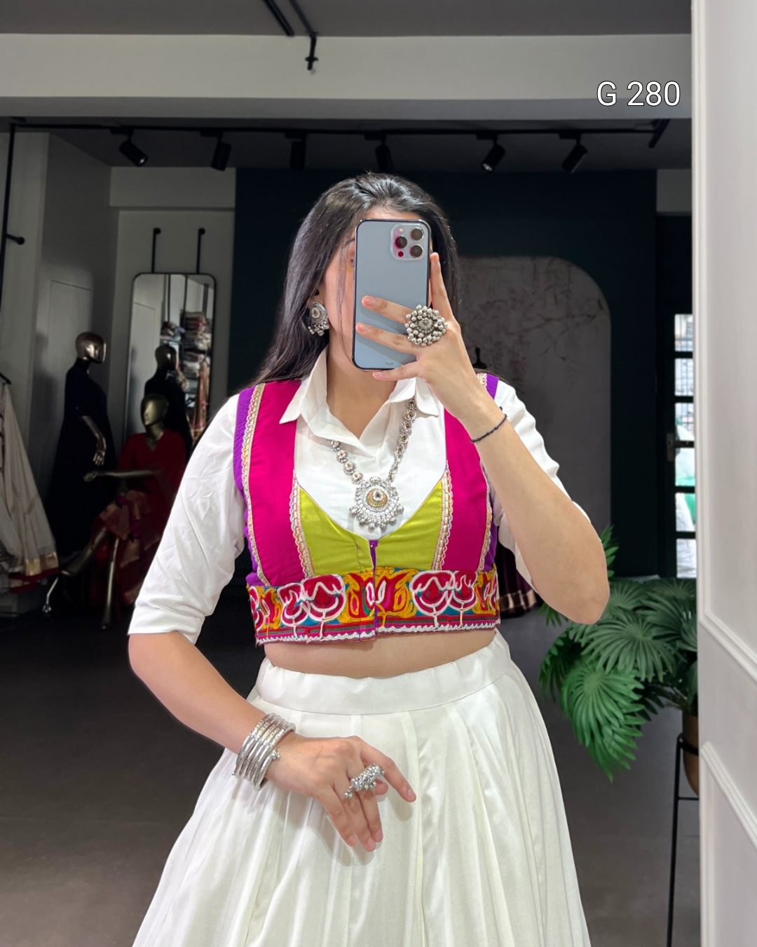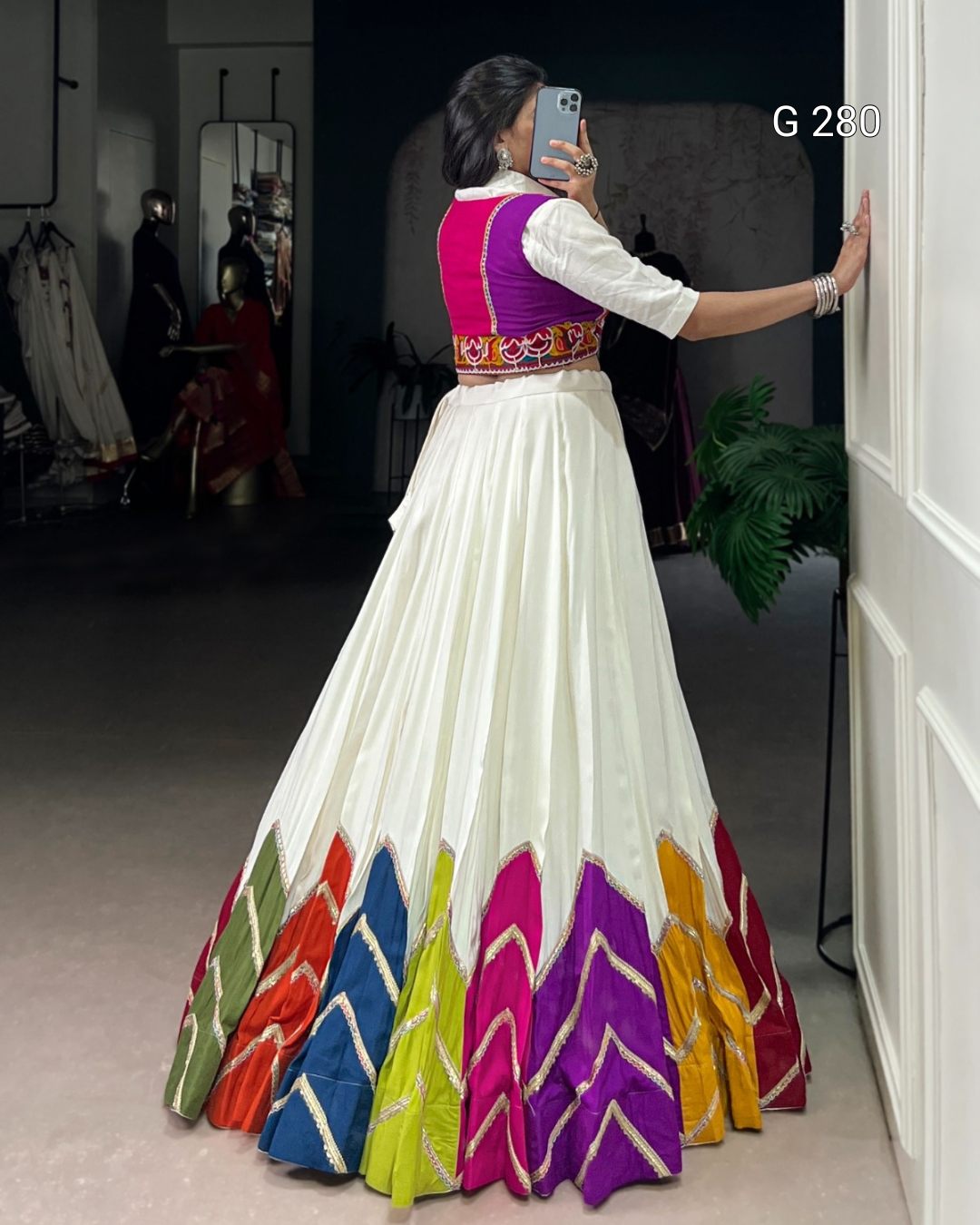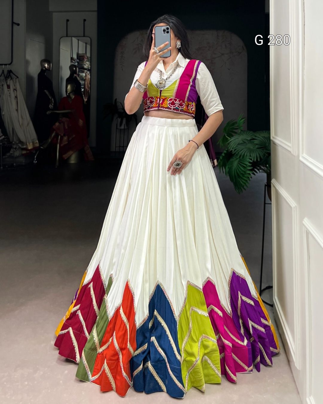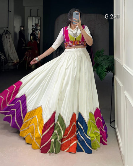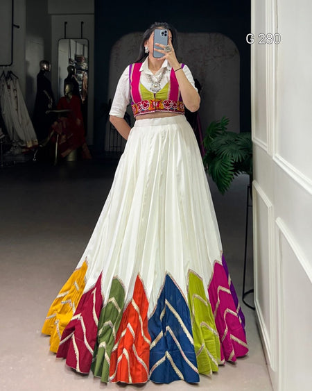 Multi Colour Patch Rayon Lehenga with Plain Shirt & Gamthi Koti – G 280 Multi