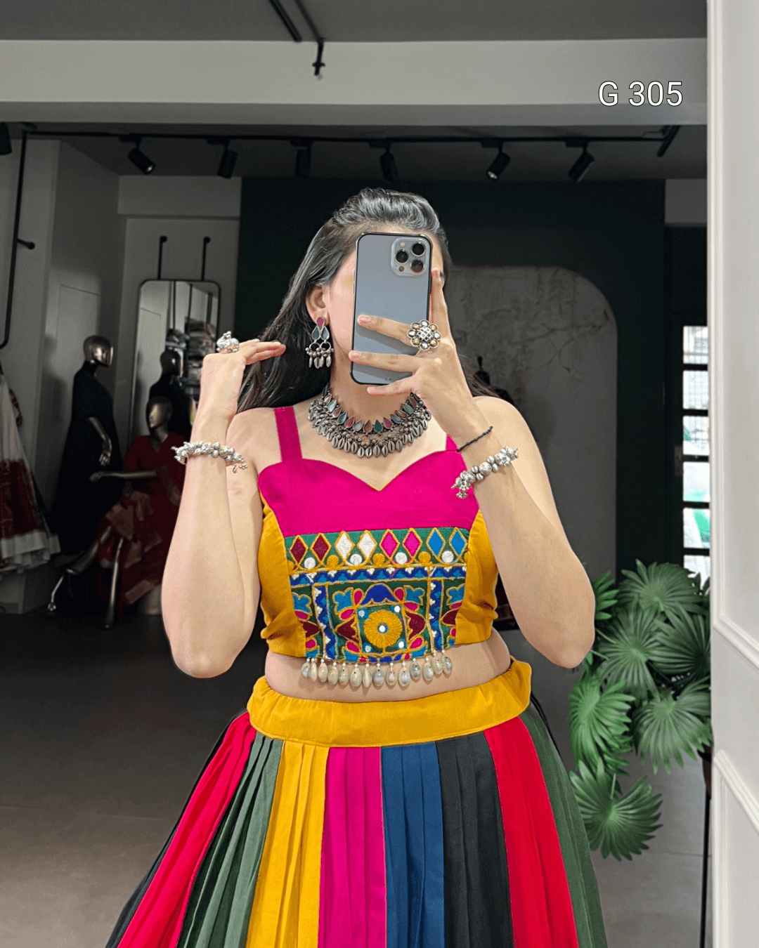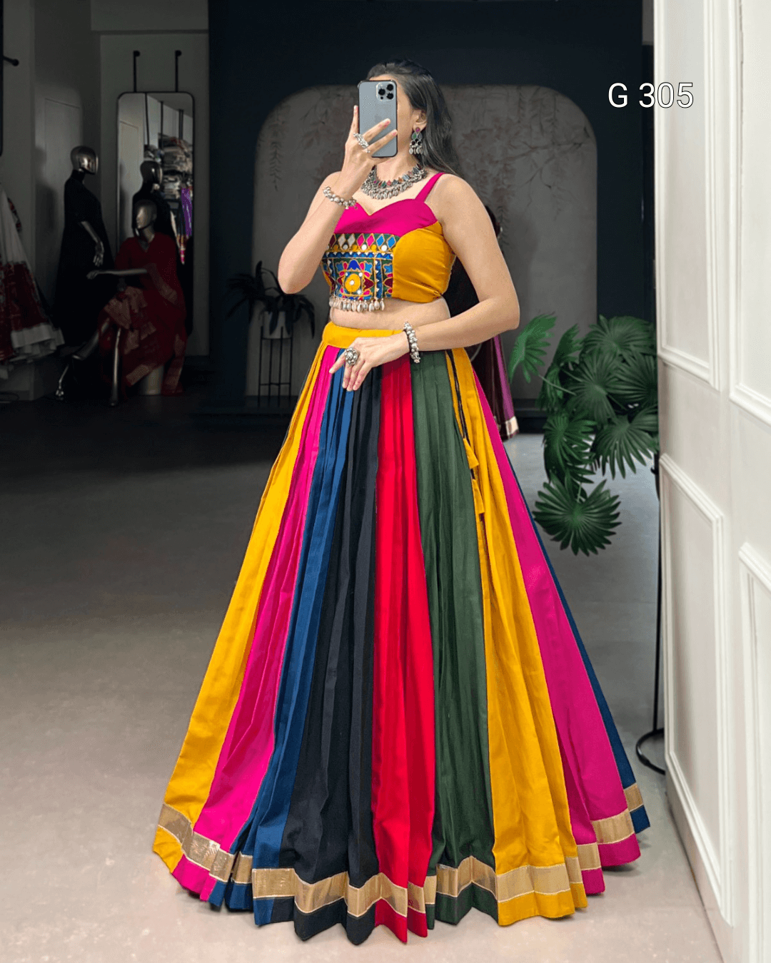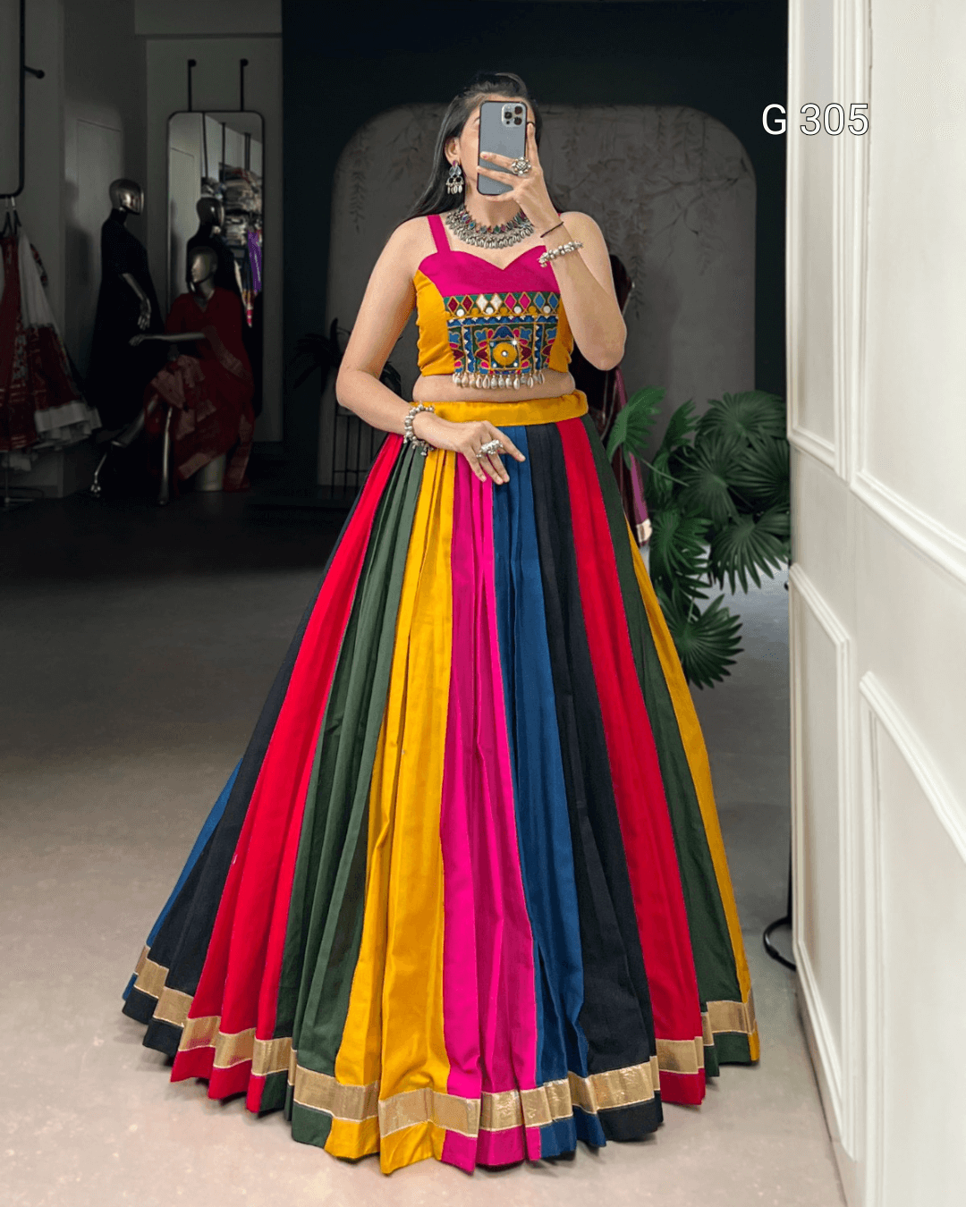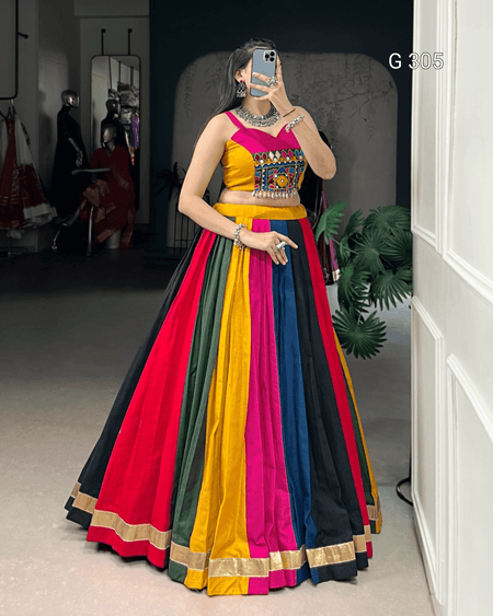 Multi-Coloured Pure Cotton Lehenga with Mirror & Lace Work – G 305 Multi