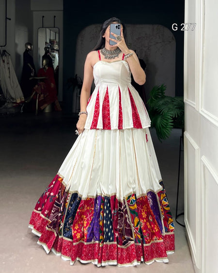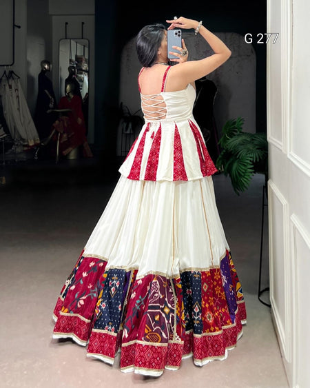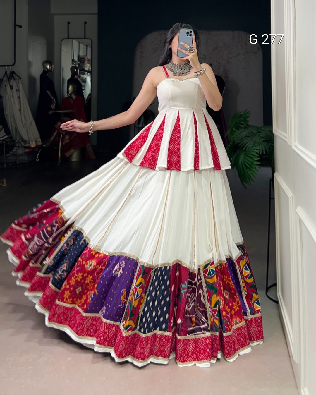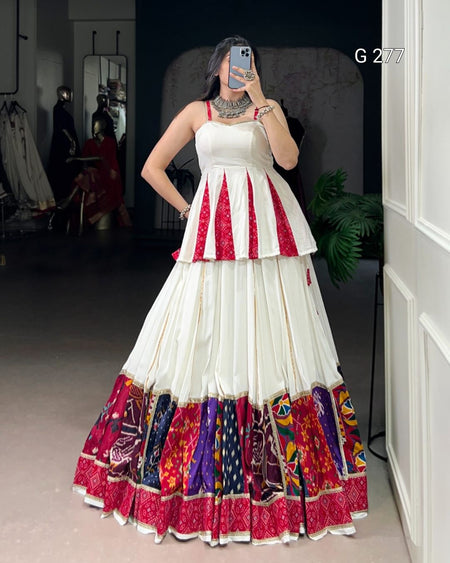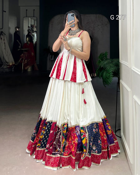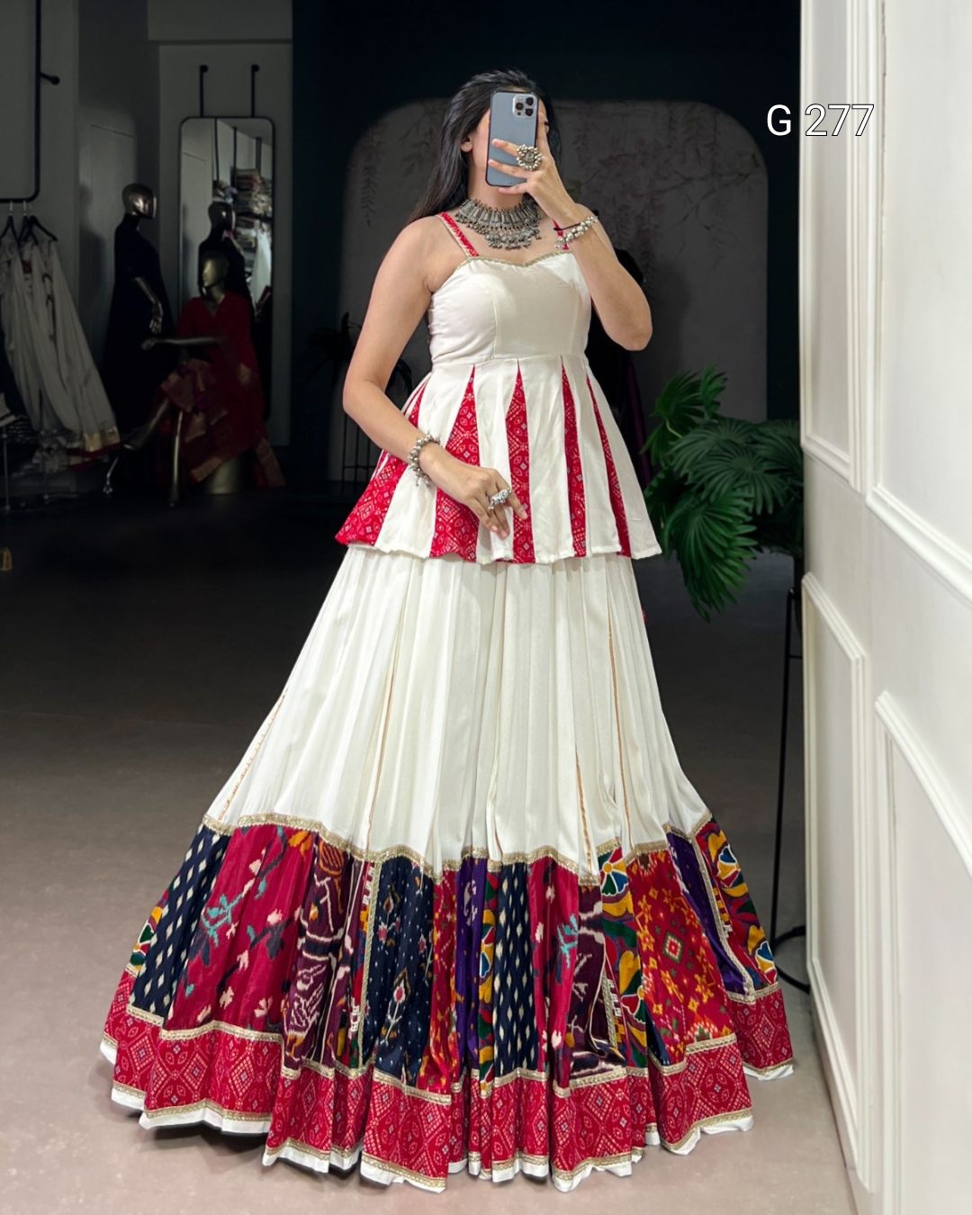Multi Patch Pure Rayon Lehenga with Bandhej Blouse – G 277 Off White