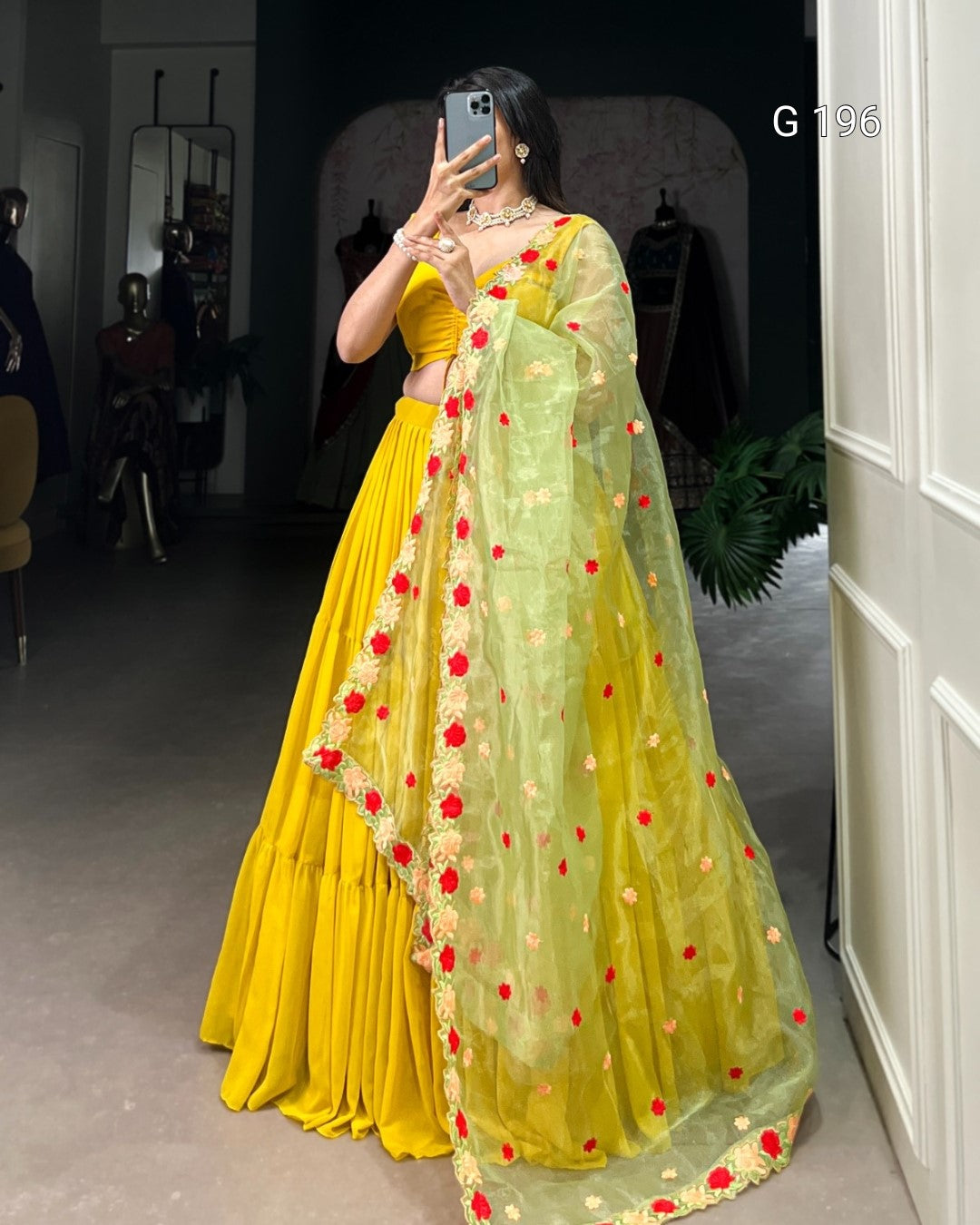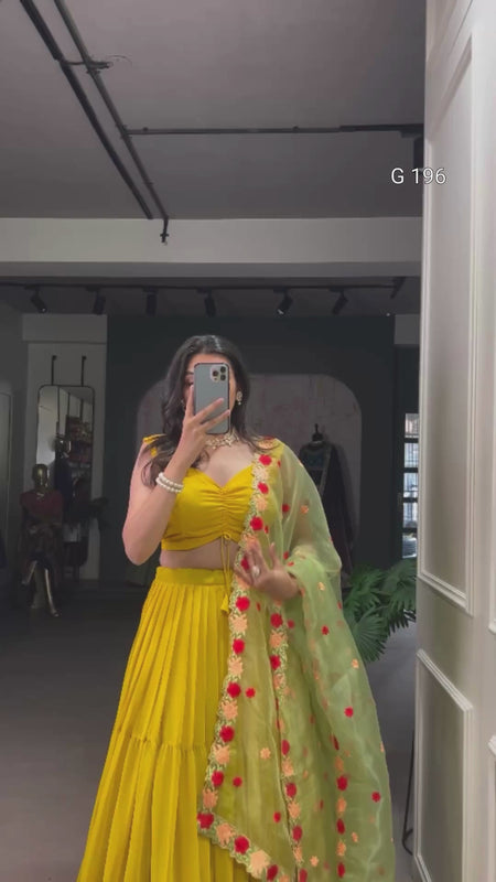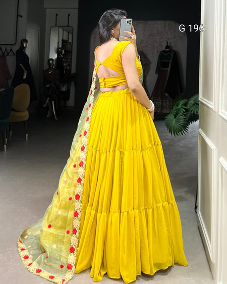 Mustard Georgette Lehenga with Plain Design & Embroidered Organza Dupatta – G 196 Mustard