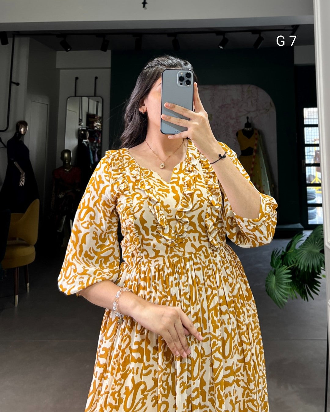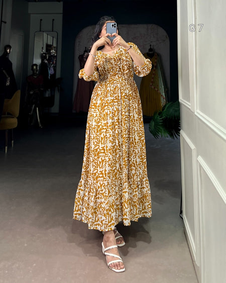 Mustard Georgette Printed Frock with Adjustable Waist – G 7 Mustred