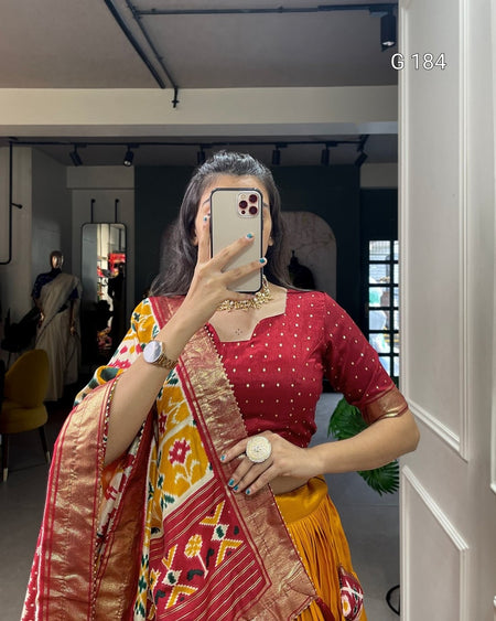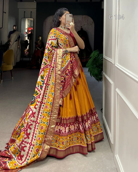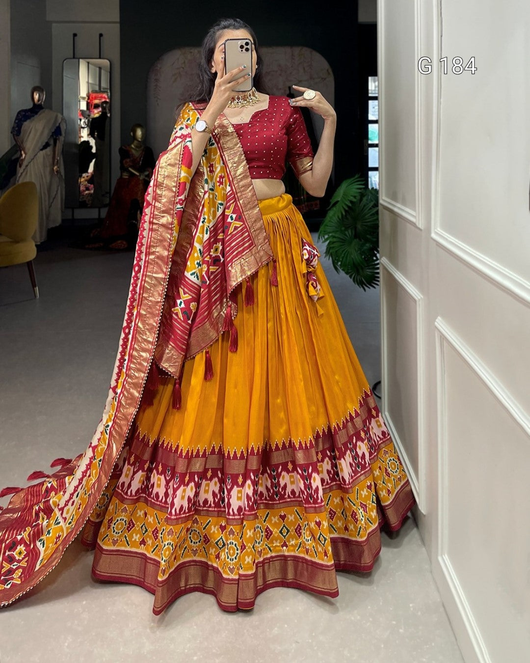 Mustard Tussar Silk Lehenga with Patola Print & Foil Work – G 184 Mustard
