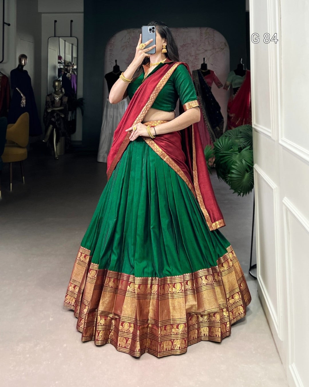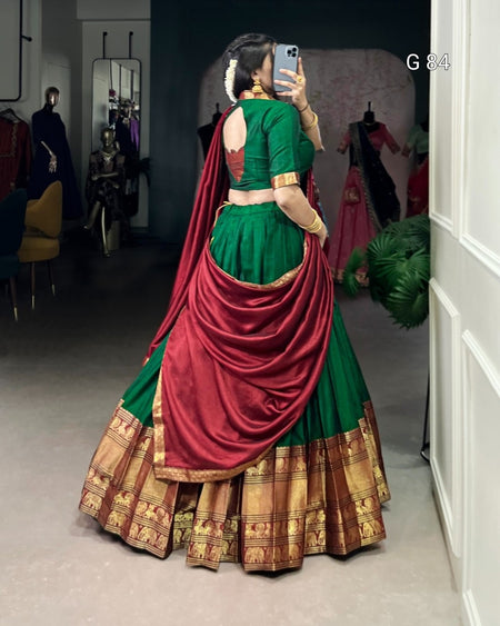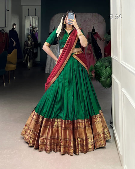 Narayan Pet Cotton Lehenga with Zari Weaving Work – G 84 Green