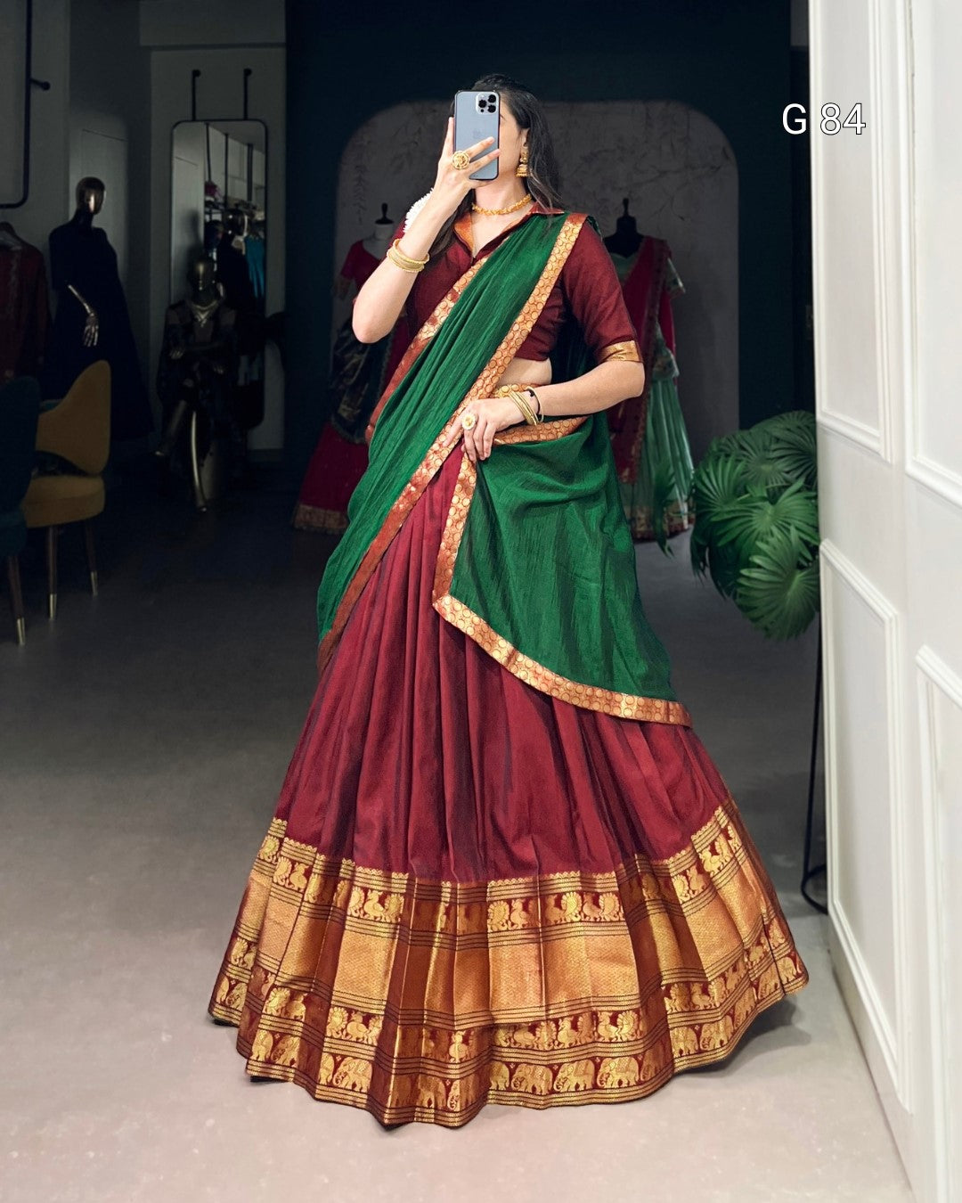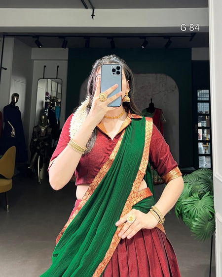 Narayan Pet Cotton Lehenga with Zari Weaving Work – G 84 Maroon