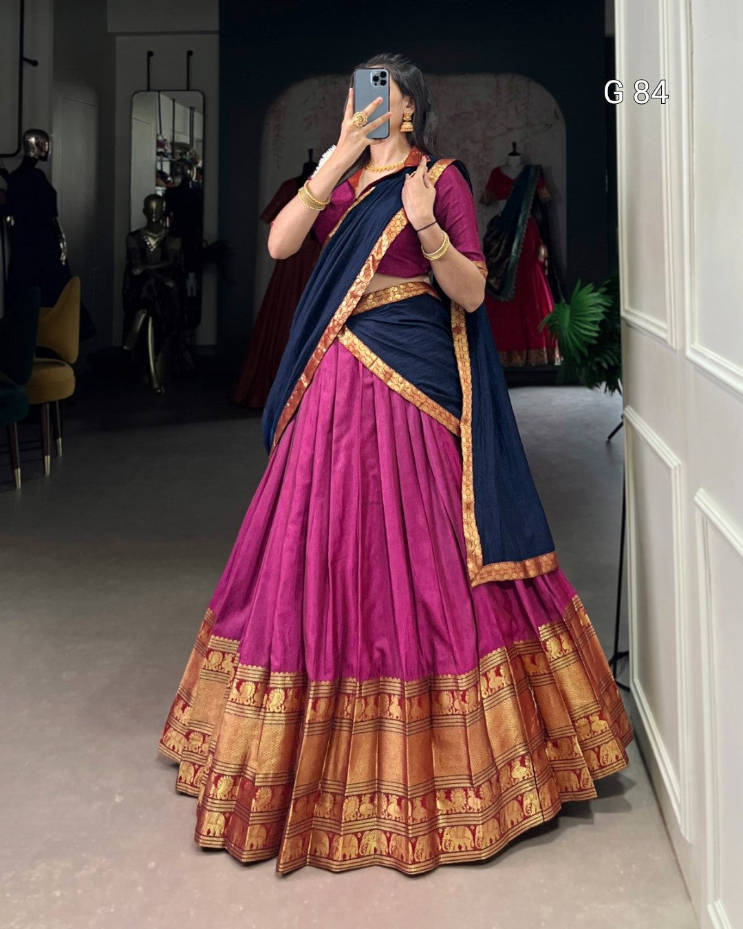 Narayan Pet Cotton Lehenga with Zari Weaving Work – G 84 Pink