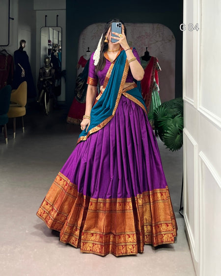 Narayan Pet Cotton Lehenga with Zari Weaving Work – G 84 Purple