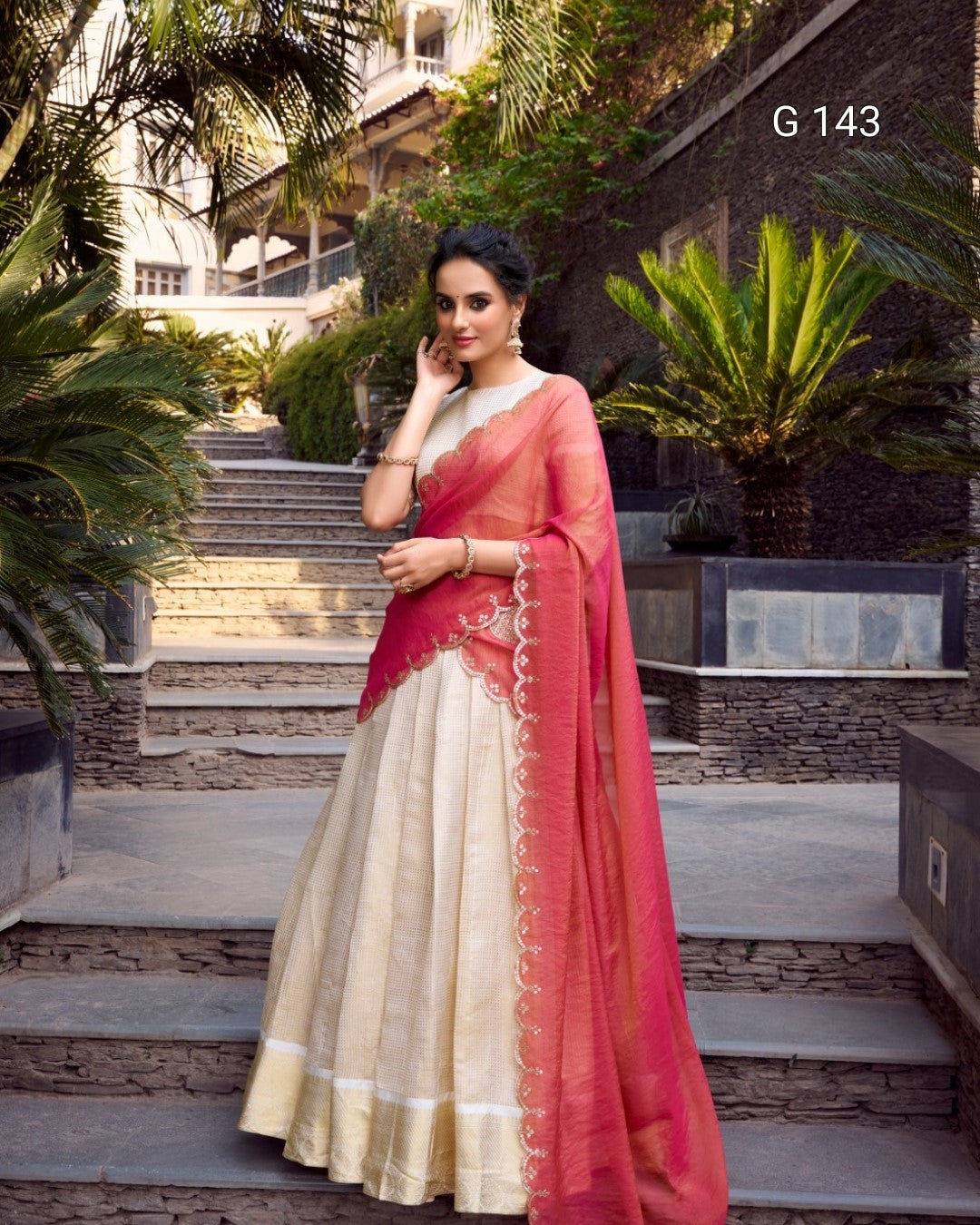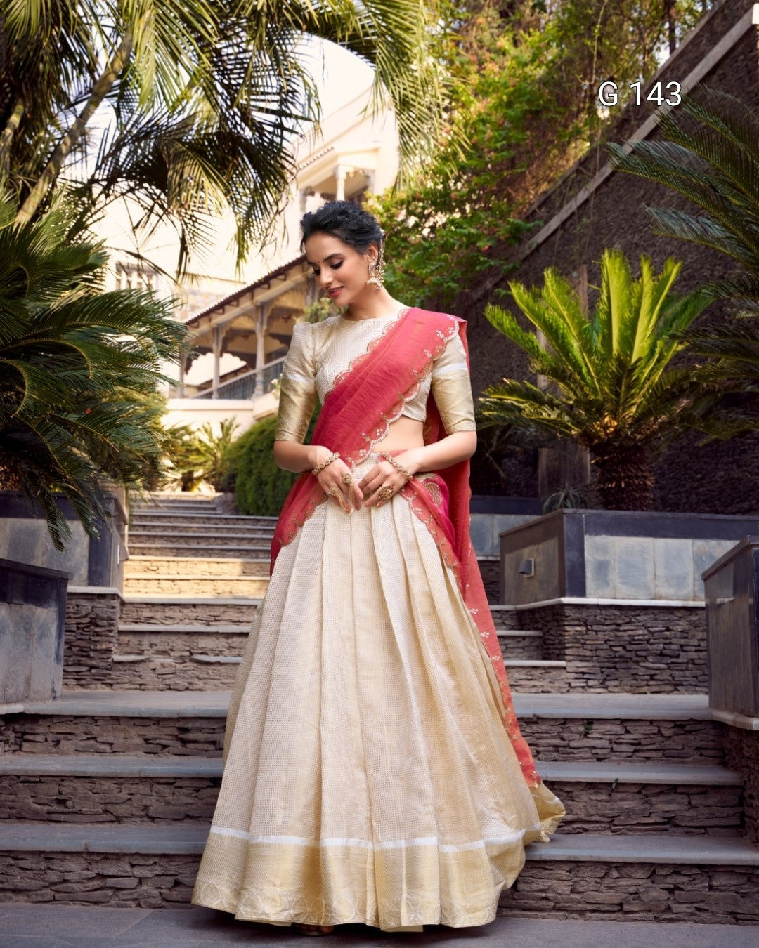 Off White Jacquard Chex Lehenga with Zari Weaving Work & Sequins Dupatta – Bridal Lehenga Set-G 143 Off White