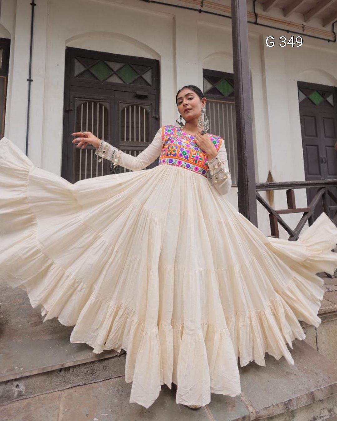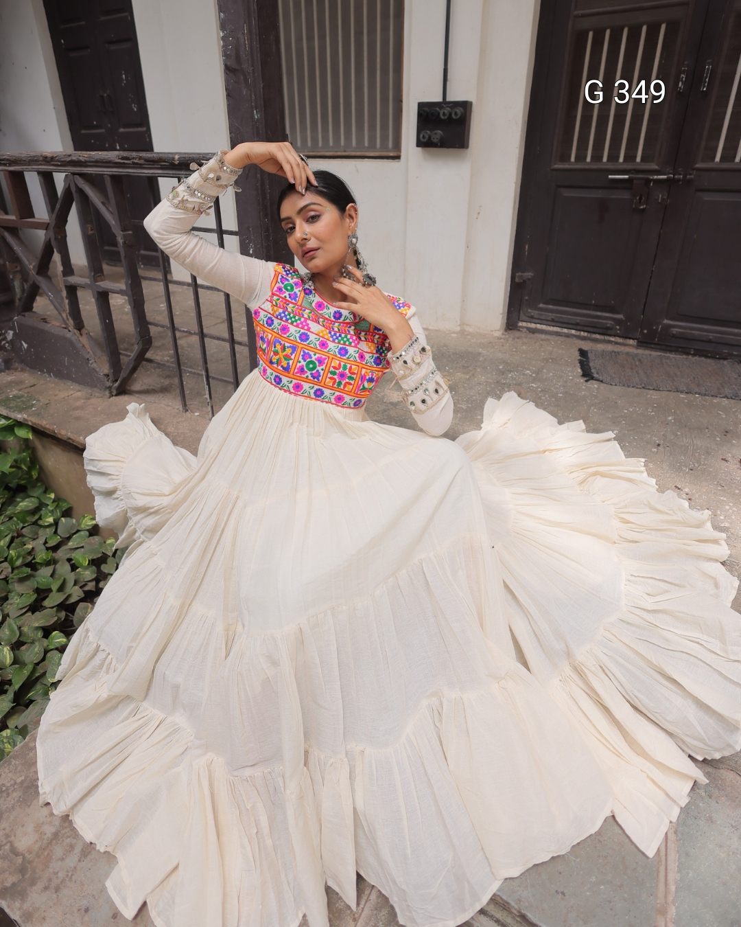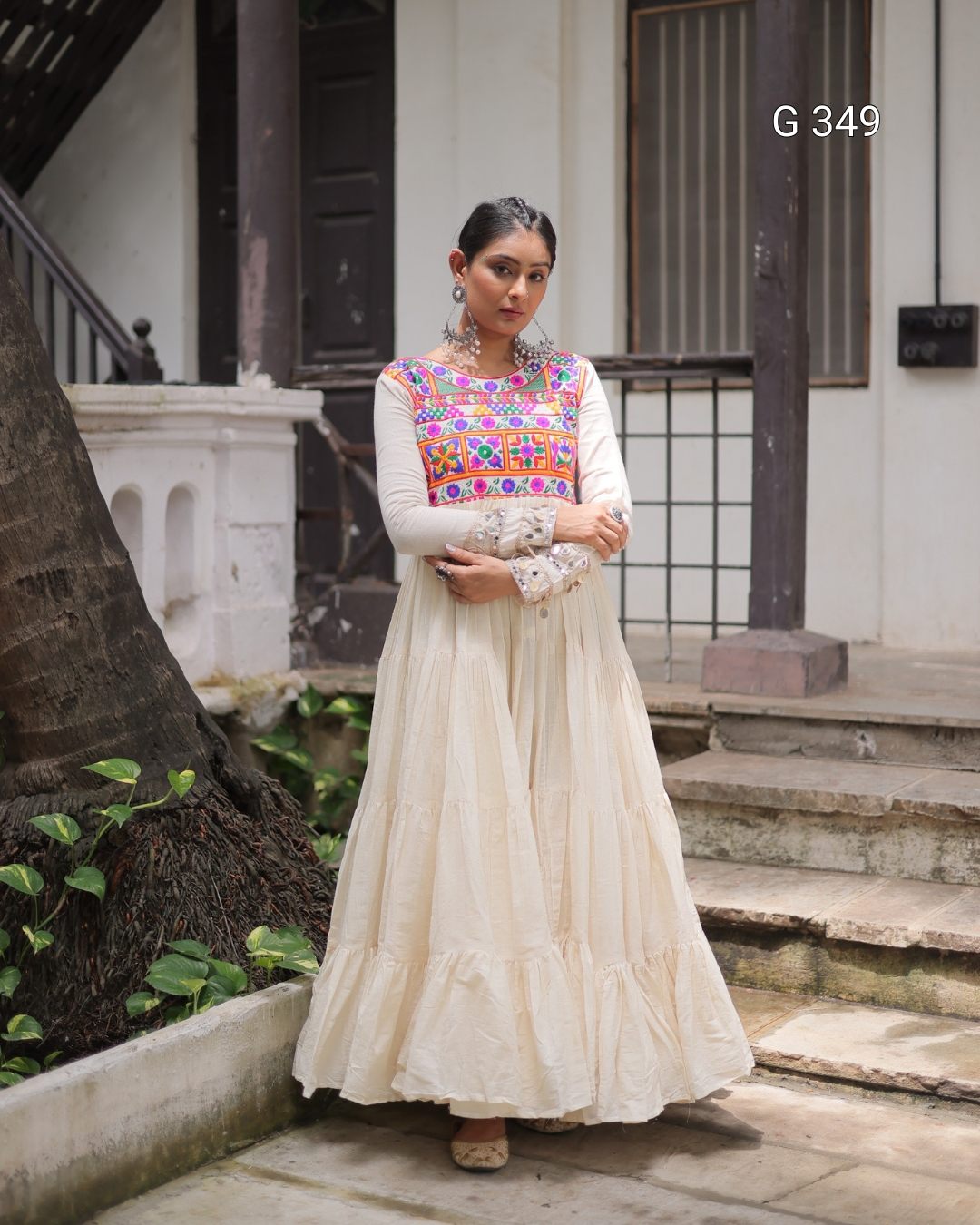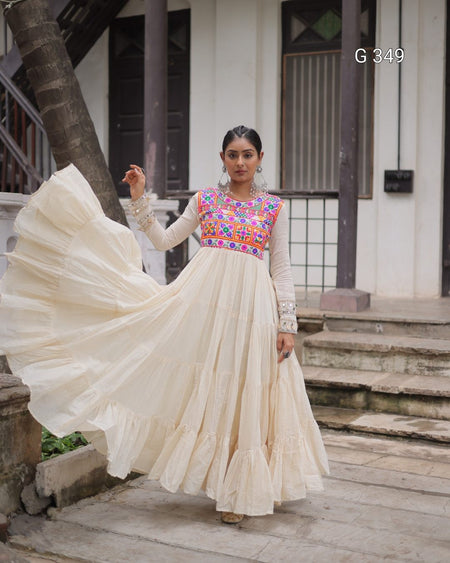 Off-White Kora Cotton Stitched Gown with Multi-Thread Gamthi Embroidery - G 349 White
