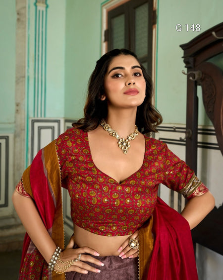 Package Includes: Lehenga, Blouse, Dupatta, Drawstring with Zip, Tassels