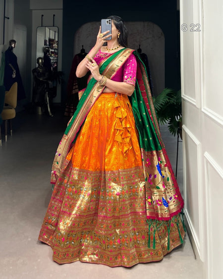 Orange Jacquard Lehenga with Zari Weaving Work – G 22 Orange