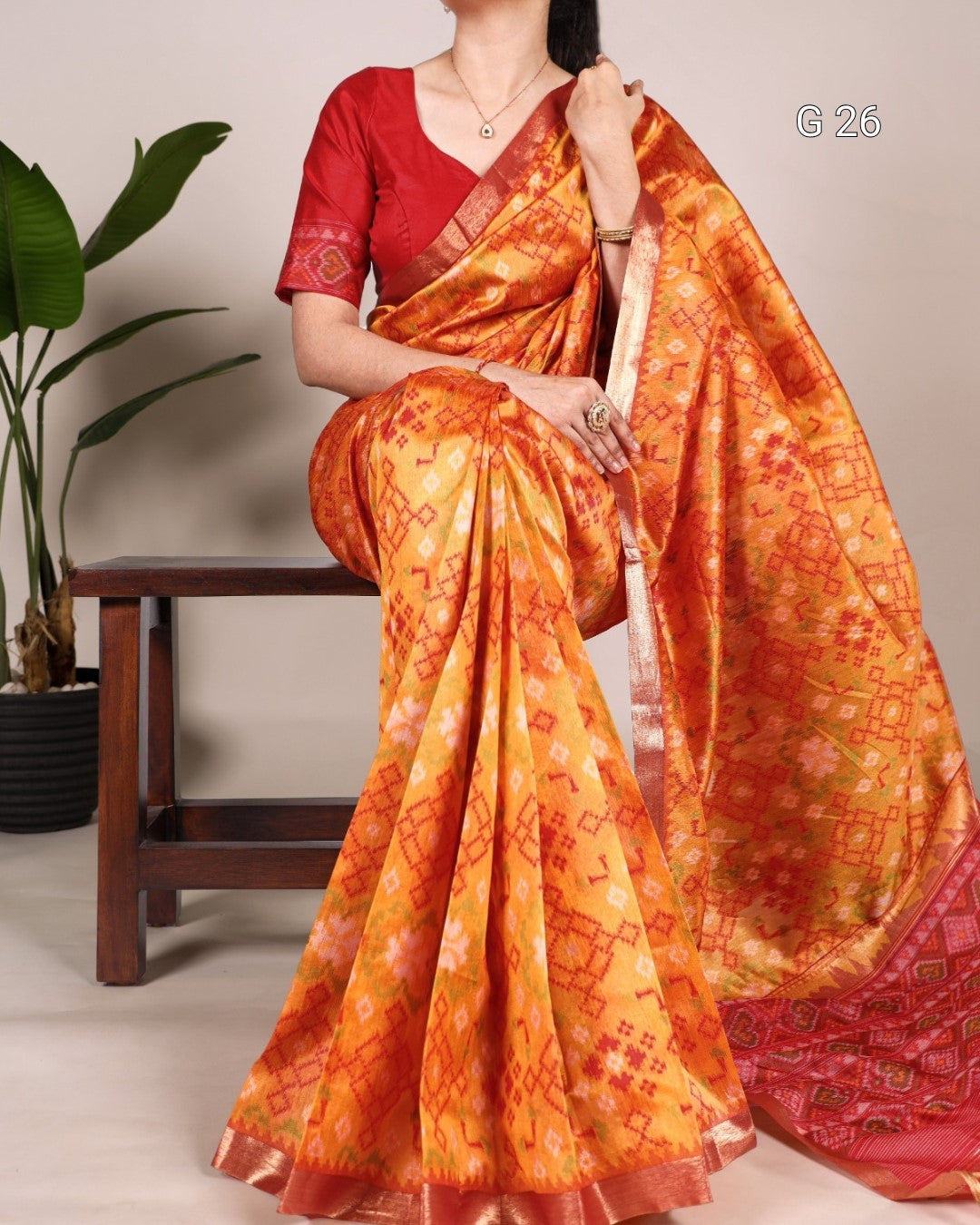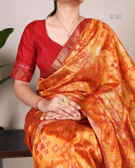 Orange Jacquard Silk Saree with Patola Print & Zari Weaving Work Unstitched Blouse - G 26 Orange