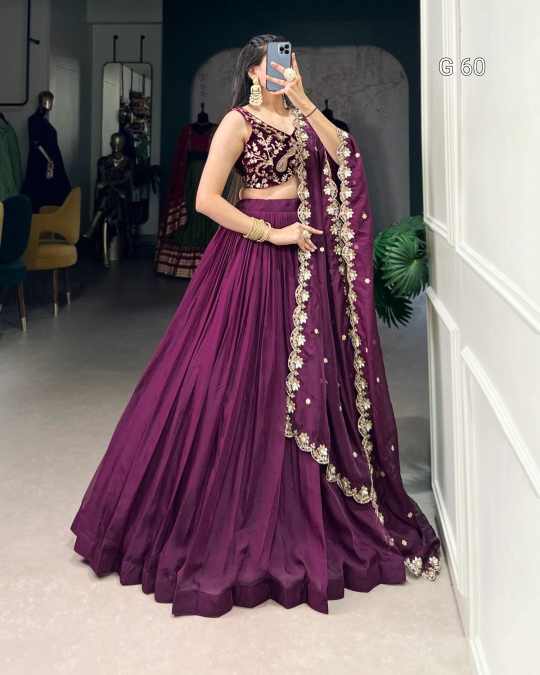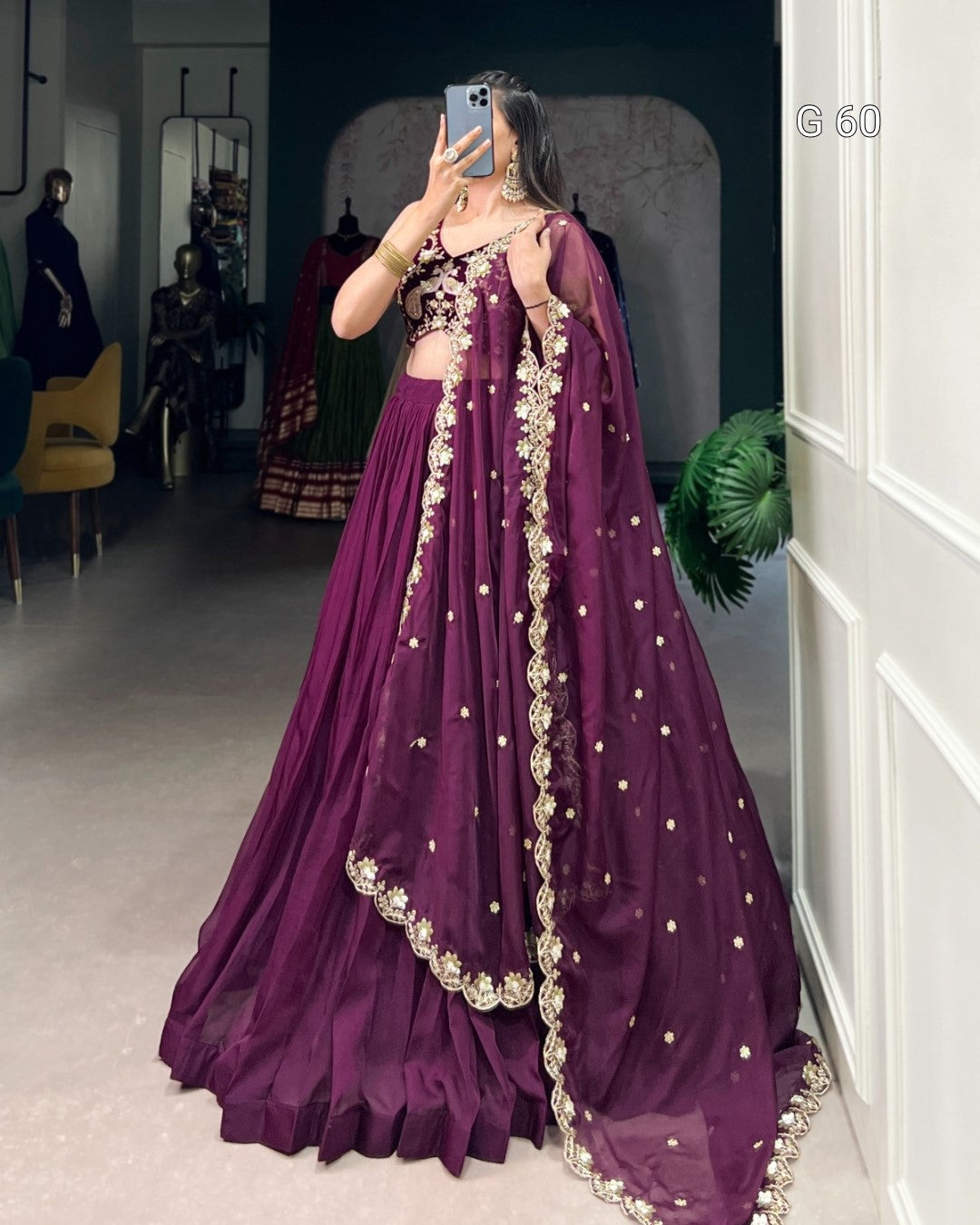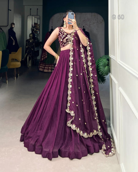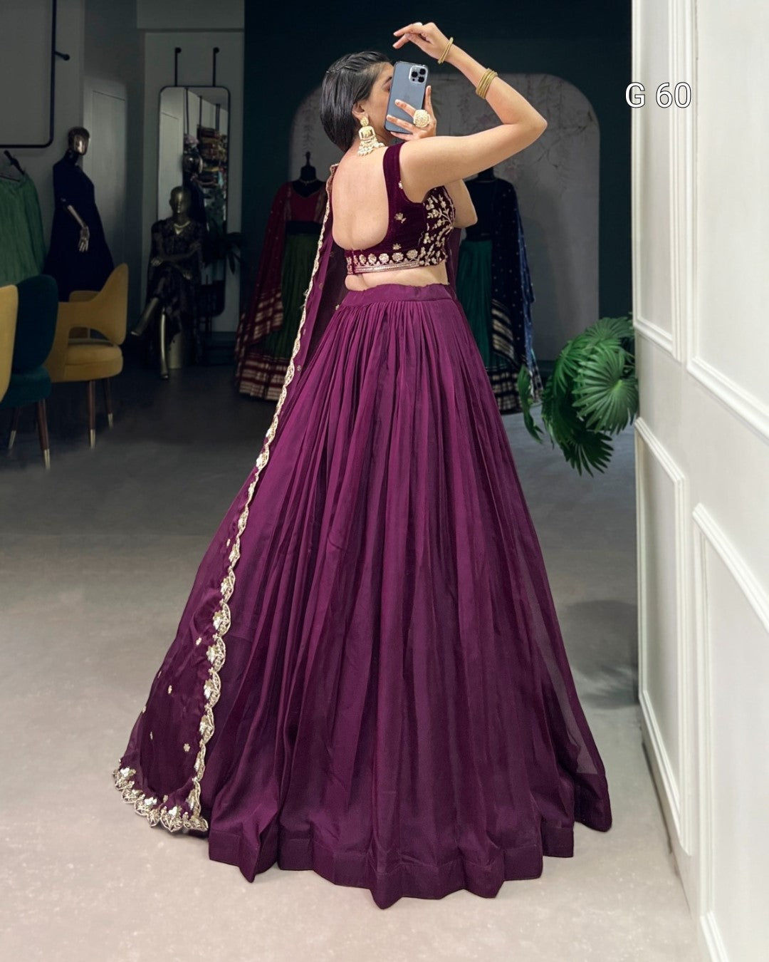 Organza Lehenga with Sequins & Thread Embroidery Work – G 60 Wine