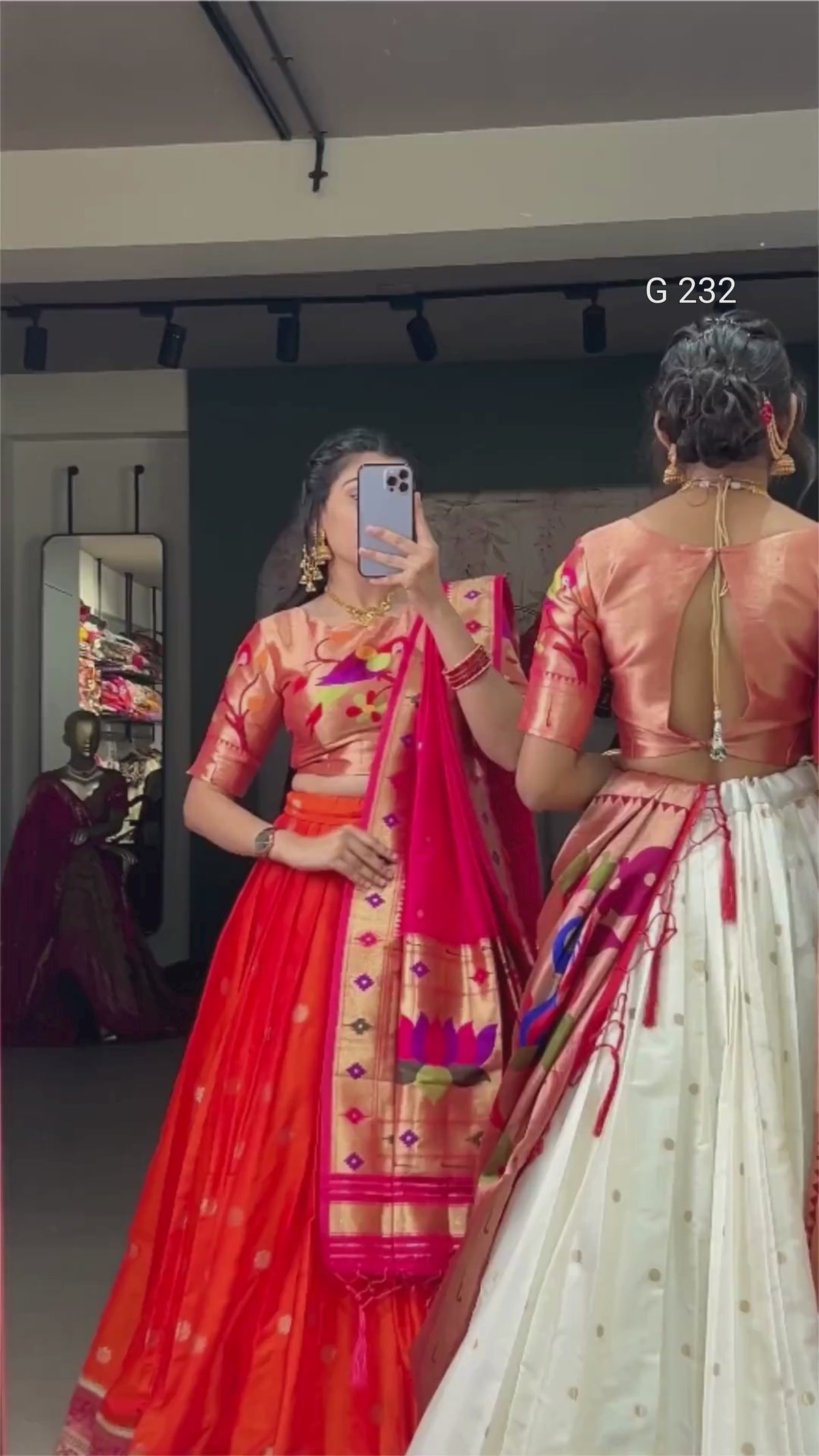 Paithani Jacquard Silk Lehenga with Zari Weaving Work & Tassels – G 232 Orange