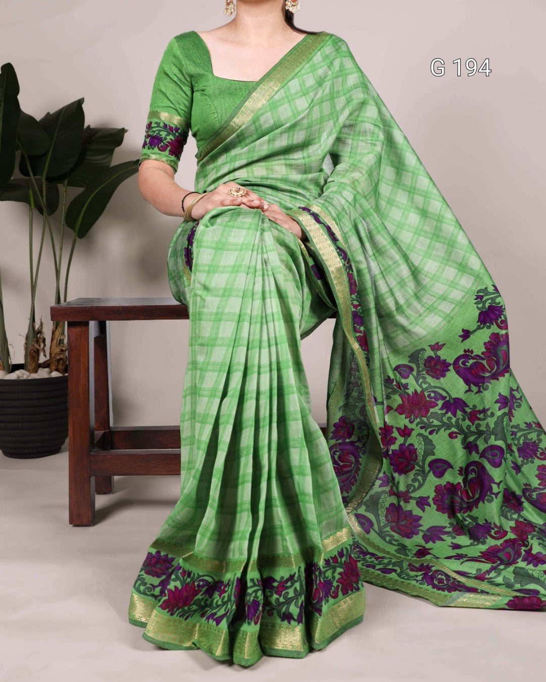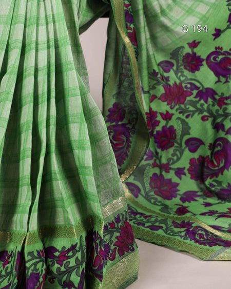 Parrot Polyester Viscose Chanderi Saree with Zari Weaving Work – G 194 Parrot