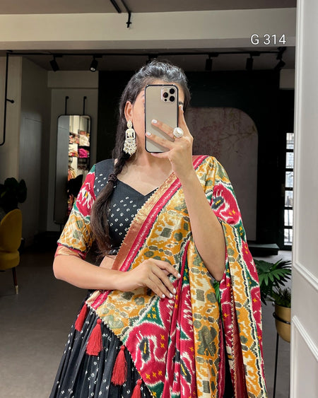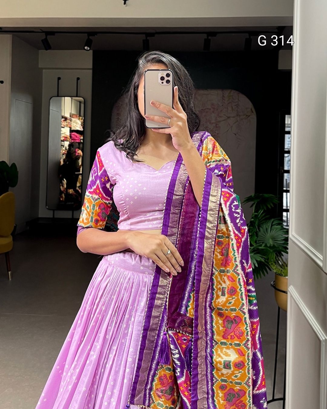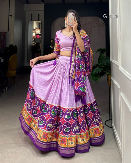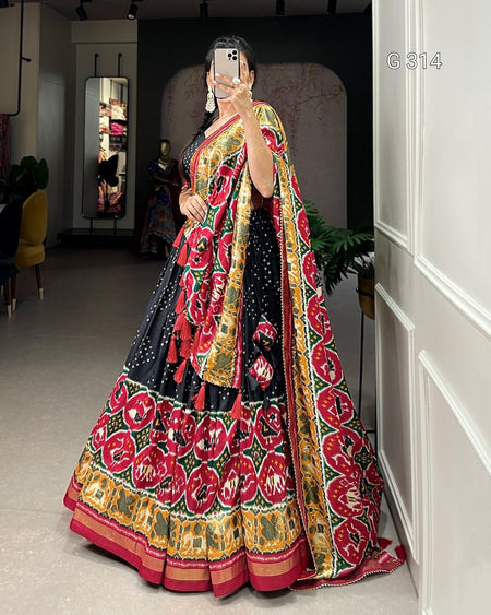 Patola Print Tasar Silk Lehenga with Foil Work – G 314