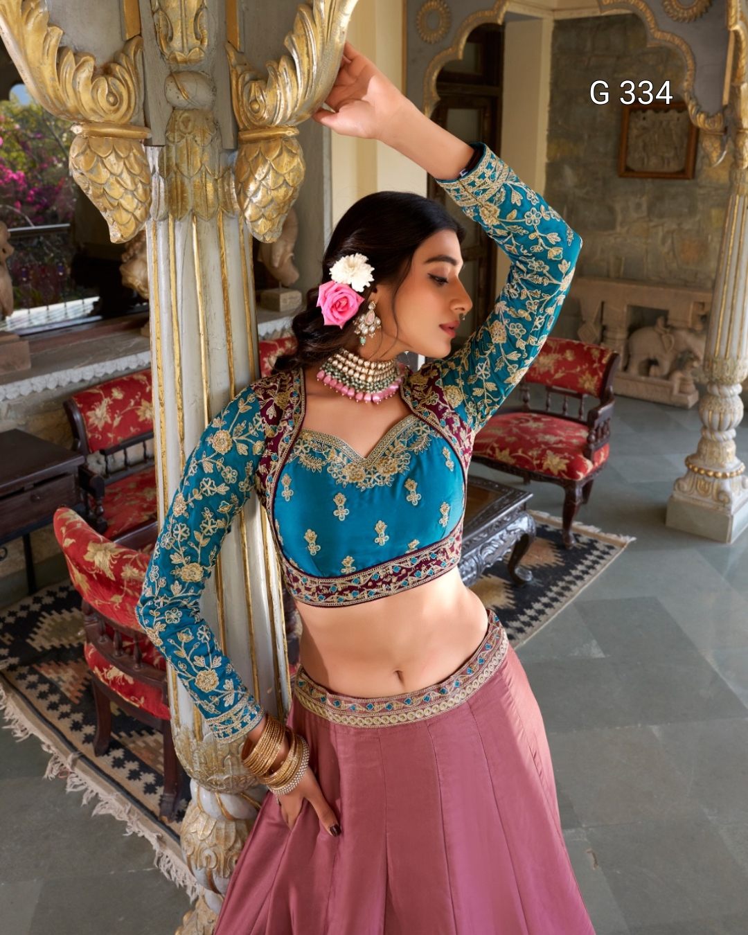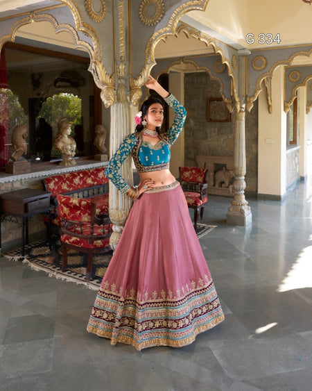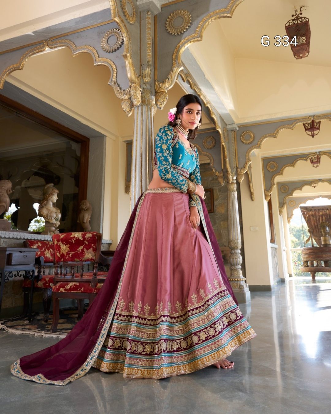 Peach Moonga Silk Lehenga with Sequins & Thread Embroidery - G 334 Peach