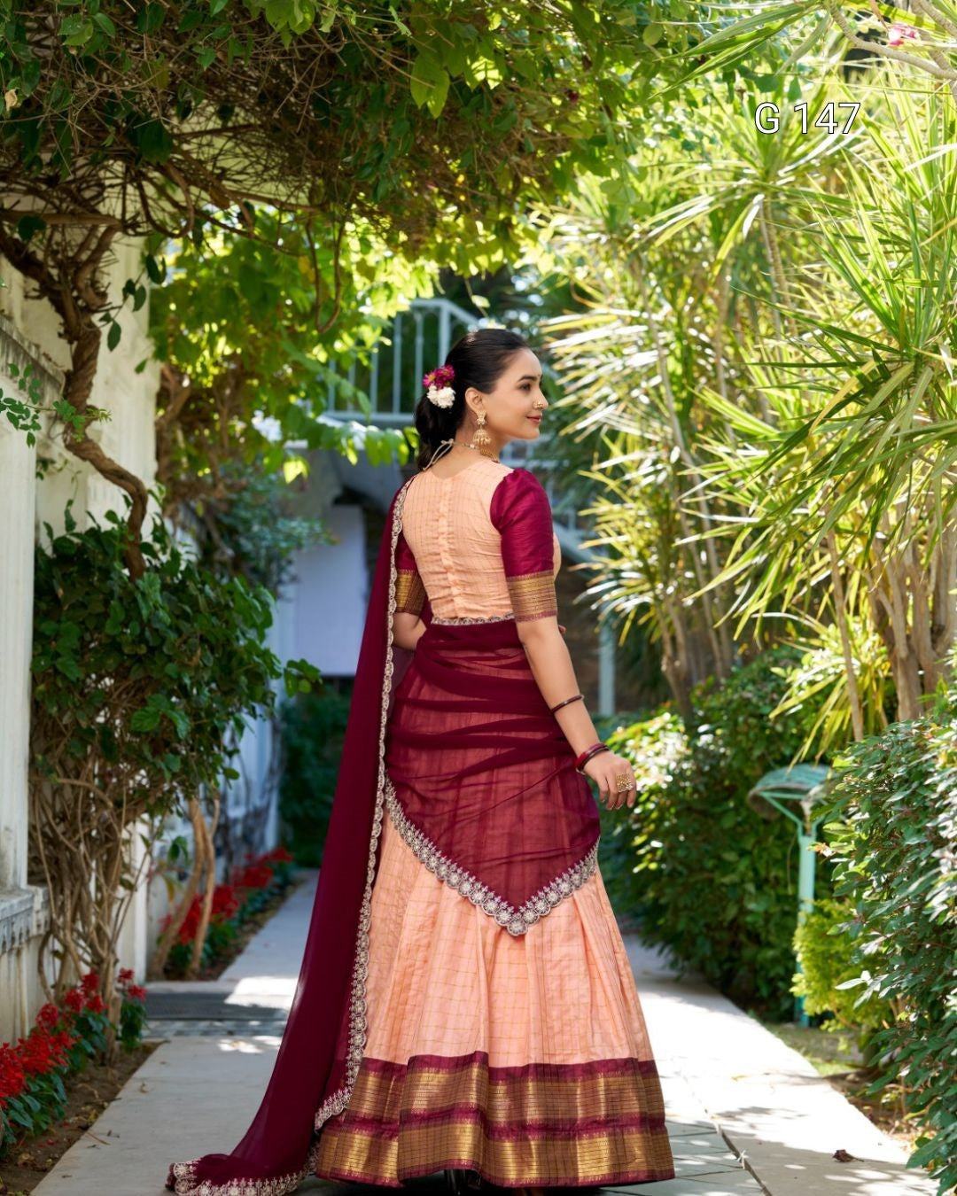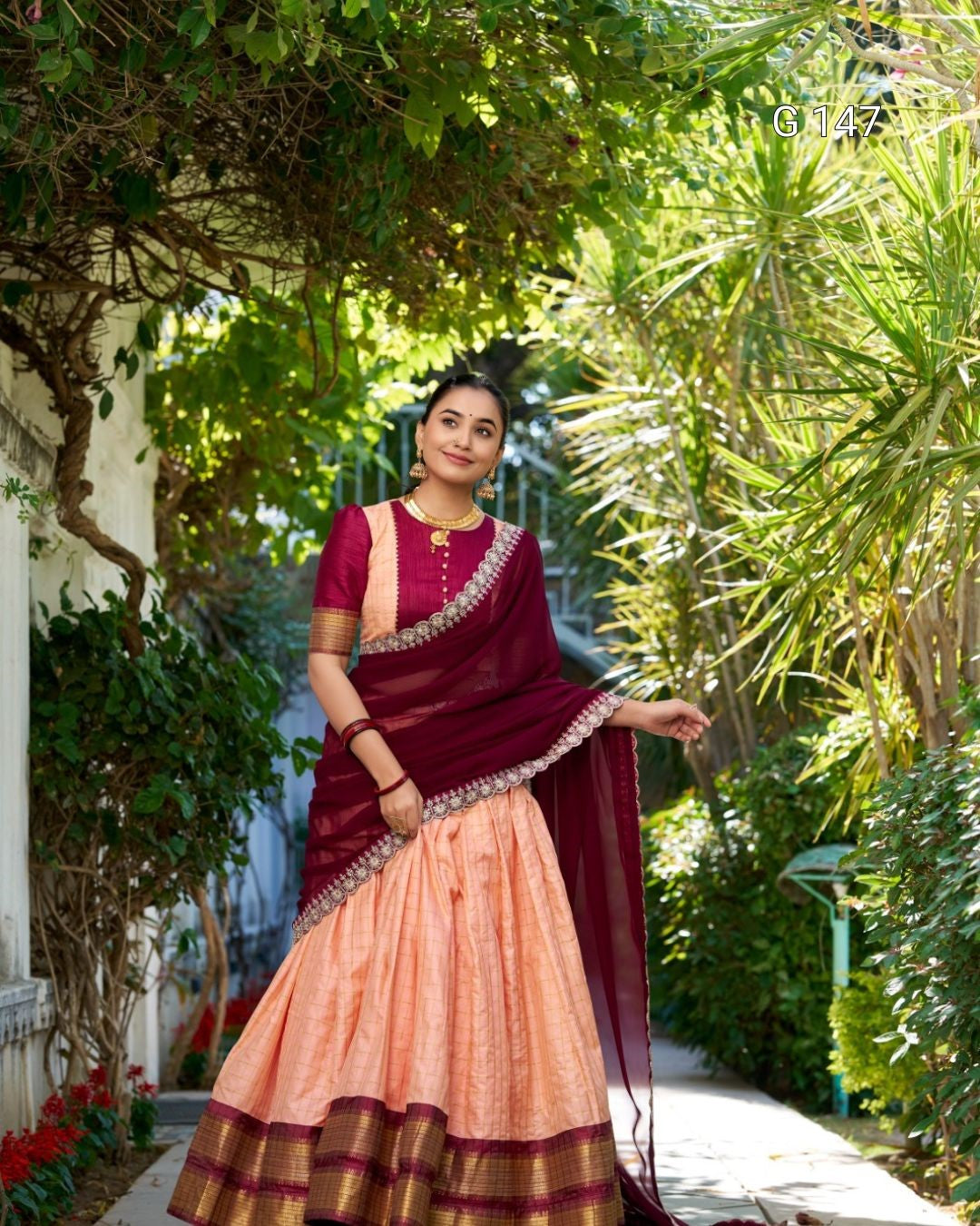 Peach Zari Chex Lehenga with Zari Weaving Work & Sequins Embroidery – Bridal Lehenga Set-G 147 Peach