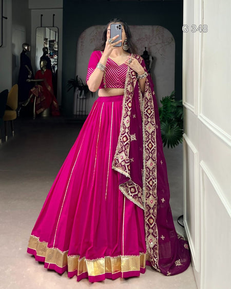 Pink Cotton Lehenga with Lace & Mirror Work - G 348 Pink