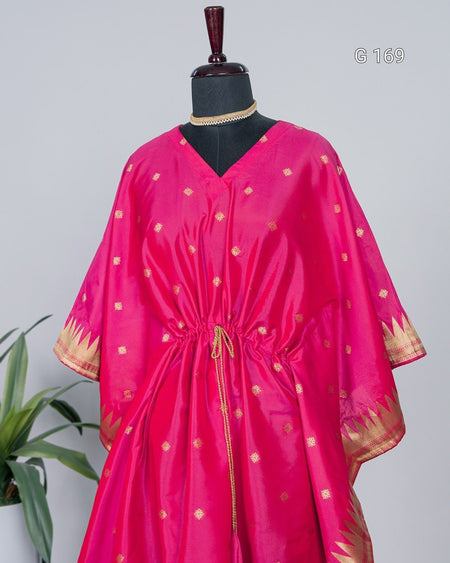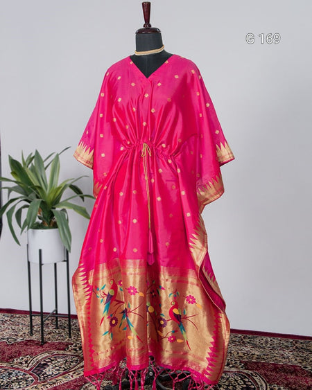 Pink Jacquard Paithani Kaftan with Zari Weaving Work & Lace Border – G 169 Pink