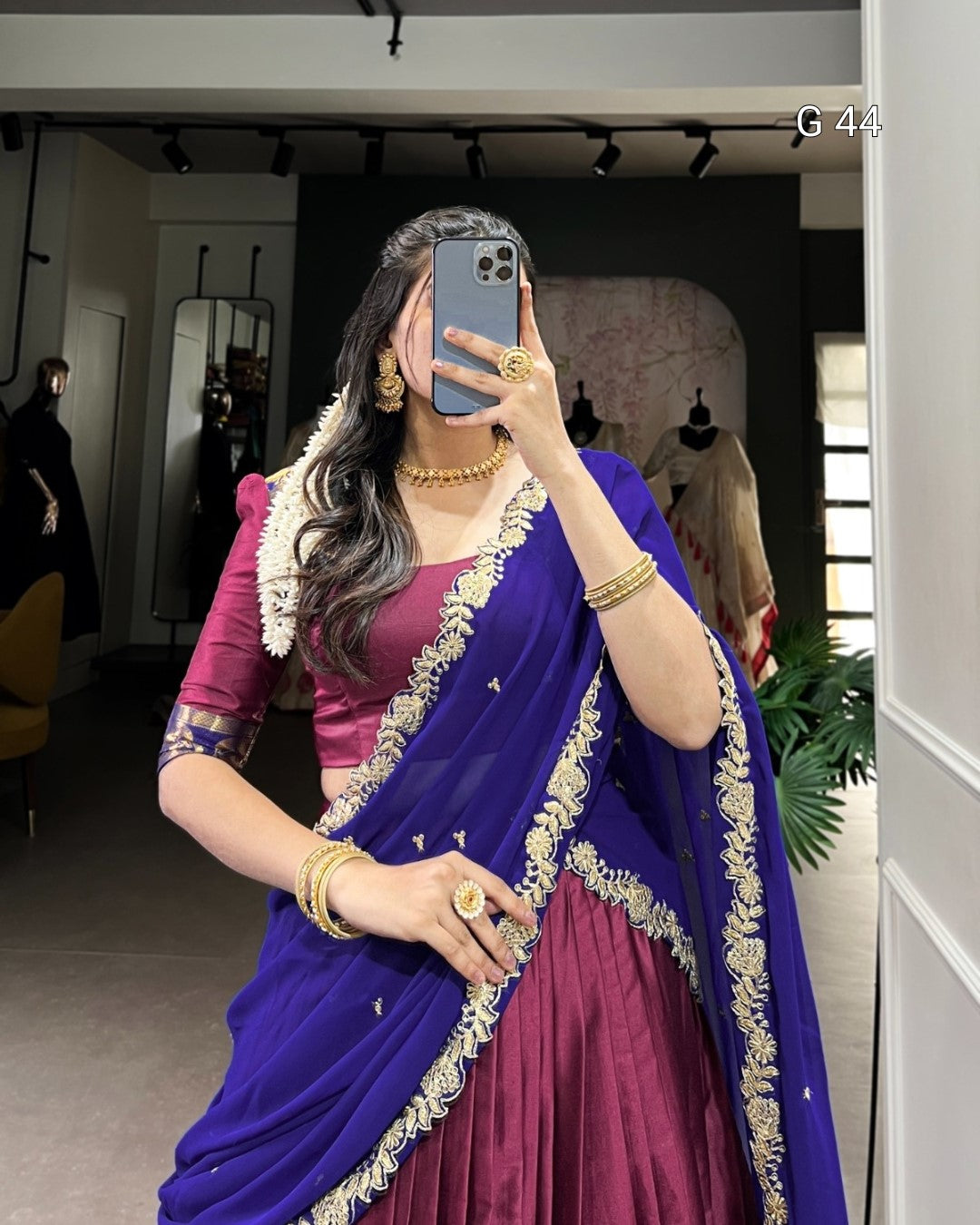 Pink Narayan Pattu Lehenga with Zari Weaving Work – Stitched Blouse with Sequins Embroidery Dupatta