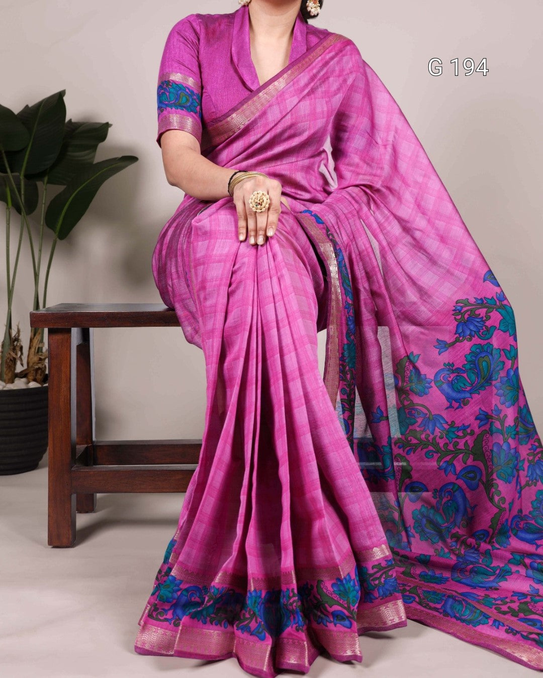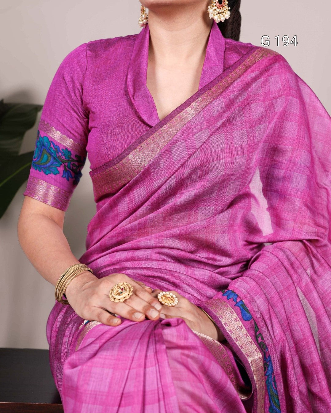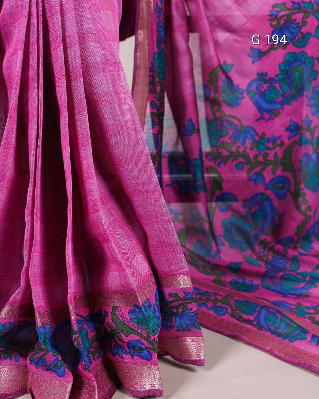 Pink Polyester Viscose Chanderi Saree with Zari Weaving Work – G 194 Pink