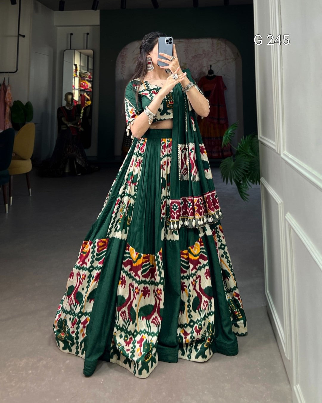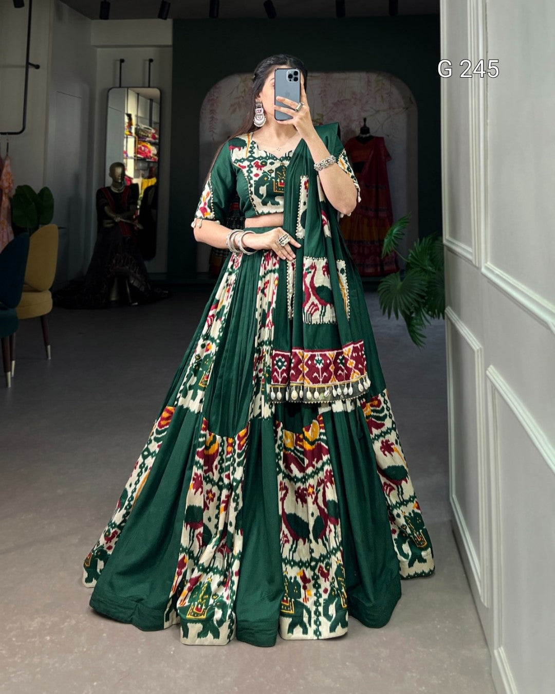 Plain and Printed Rayon Lehenga with Gota Patti & Cowrie Lace – G 245 Green