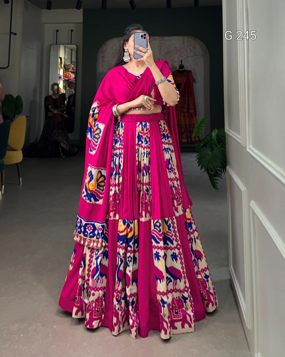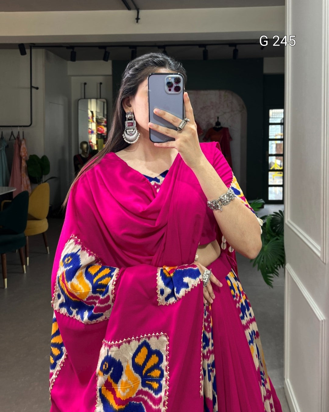 Plain and Printed Rayon Lehenga with Gota Patti & Cowrie Lace – G 245 Pink