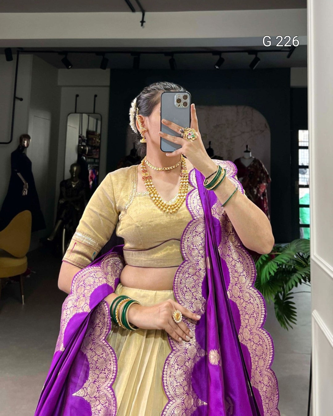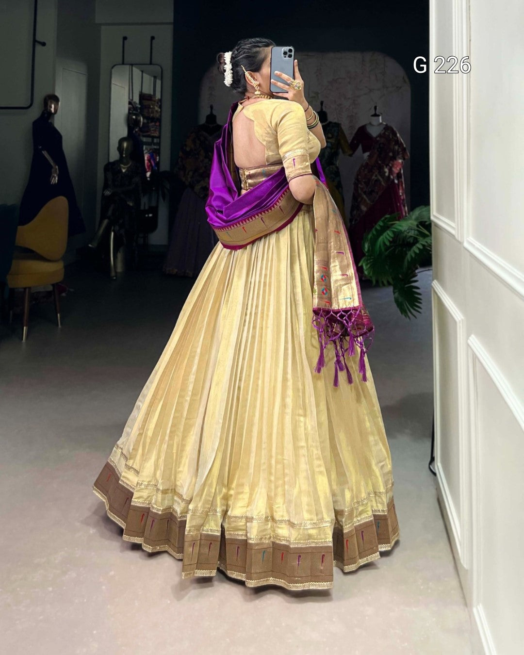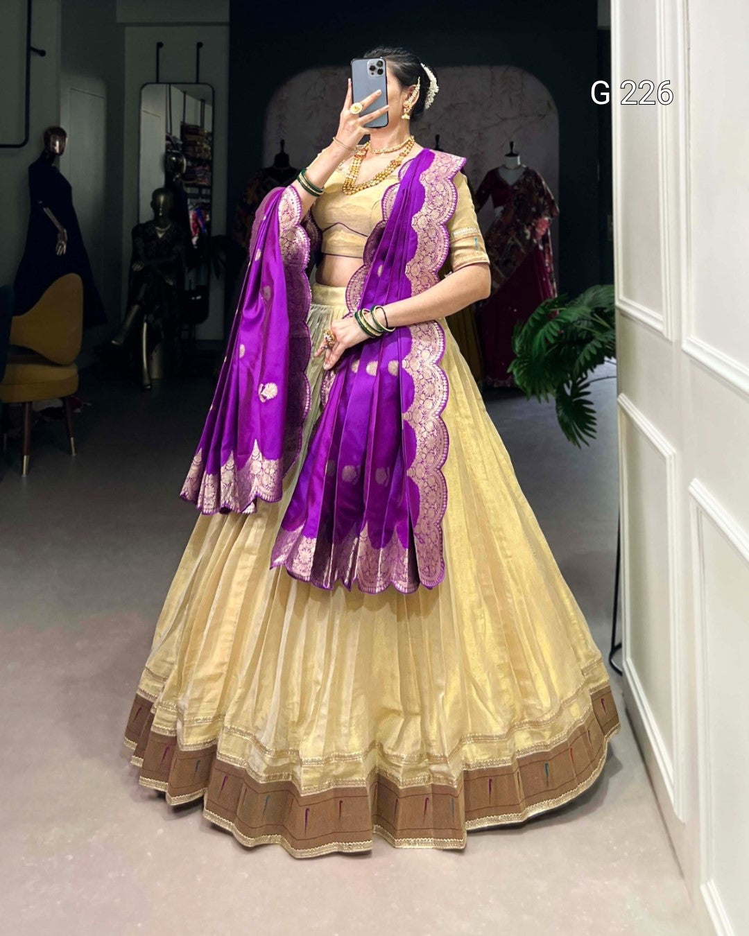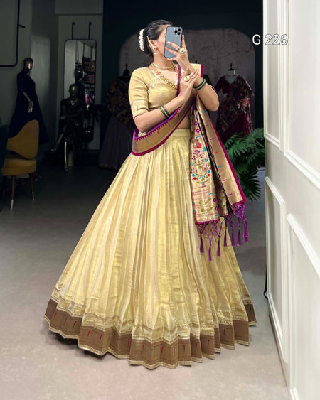 Plain Erode Lehenga with Paithani Lace Border & Jacquard Silk Dupatta – G 226 Cream