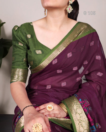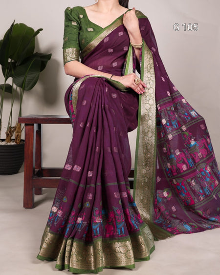 Poly Cotton Saree with Kalamkari Print & Zari Weaving Work – G 105 Wine