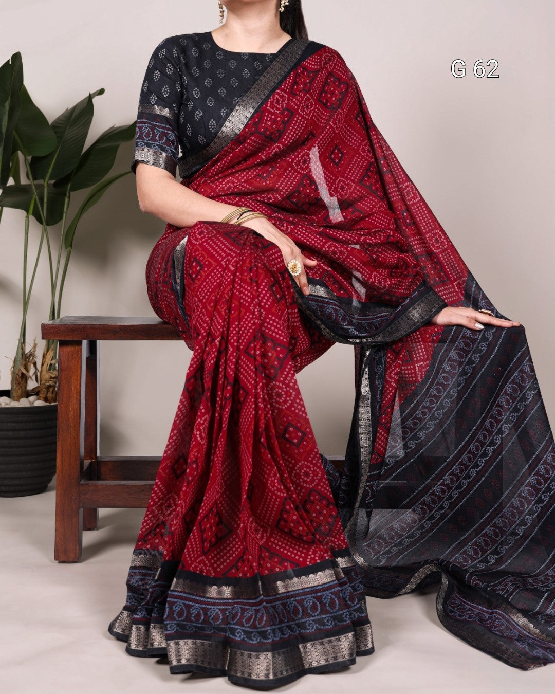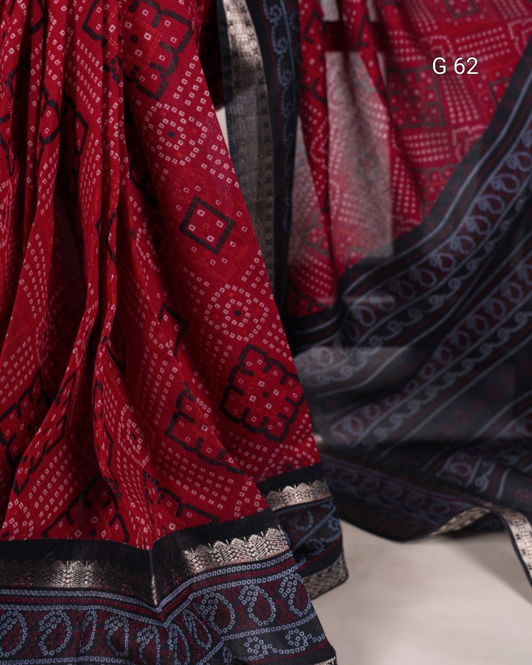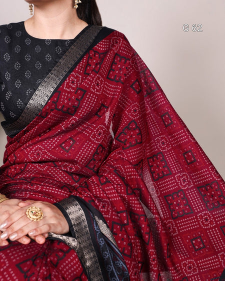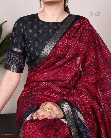 Polyester Viscose Chanderi Saree with Bandhej Print & Zari Weaving Work – G 62 Maroon