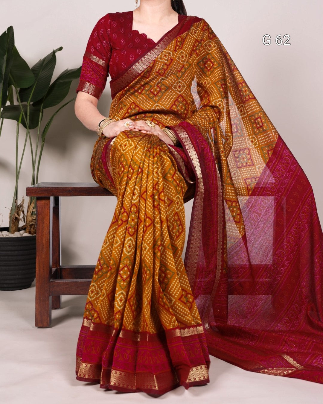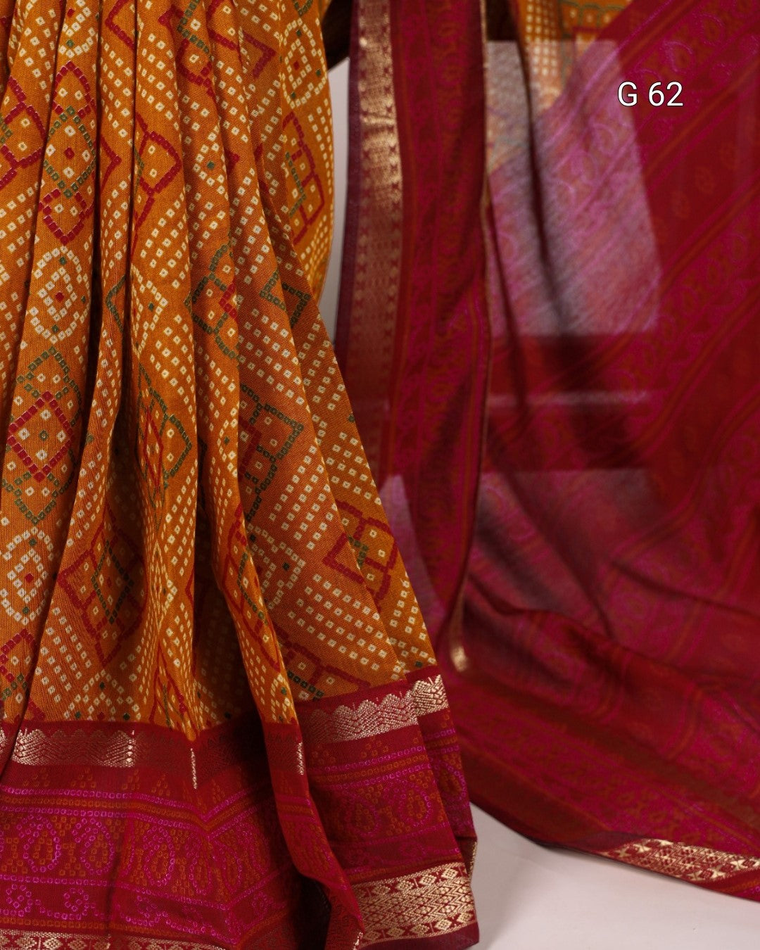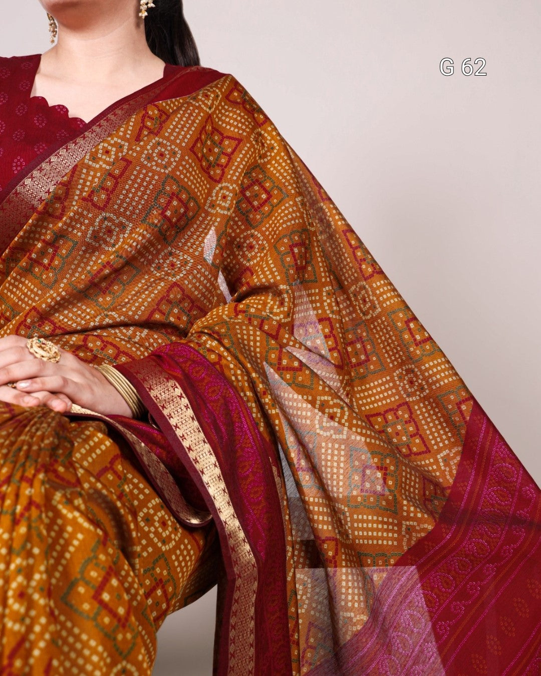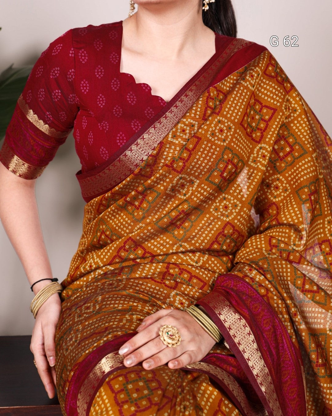 Polyester Viscose Chanderi Saree with Bandhej Print & Zari Weaving Work – G 62 Mustred