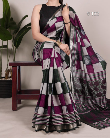 Polyester Viscose Chanderi Saree with Temple Border – G 122 Green