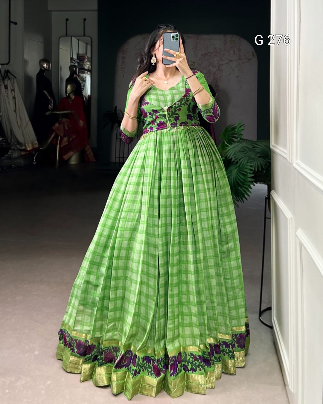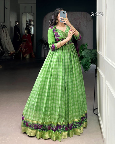 Printed Polyester Viscose Chanderi Gown with Koti – G 276 Parrot